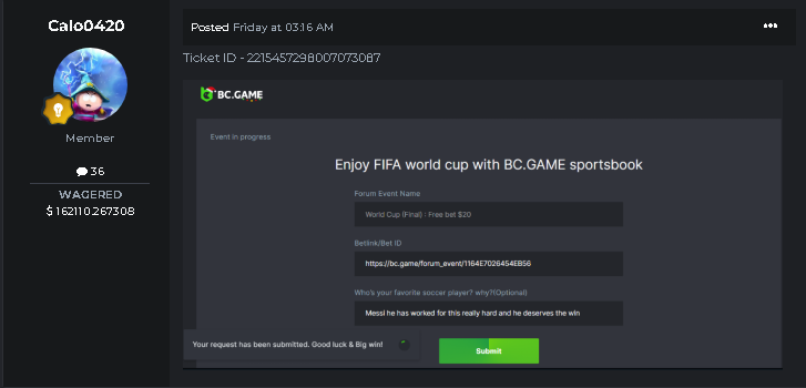Calo0420 replied to BCGame_Maxim's topic in VIP Challenges
