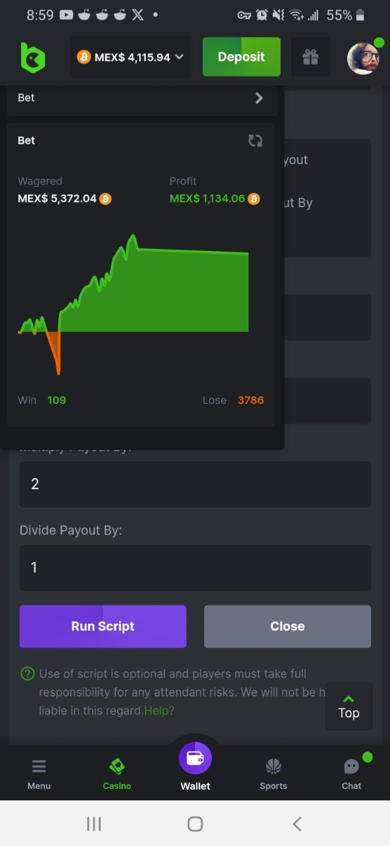 1. Here is another shot. This is within the same run. Notice the loss streak and the recovery. I plan on sharing the script once I test it some more.