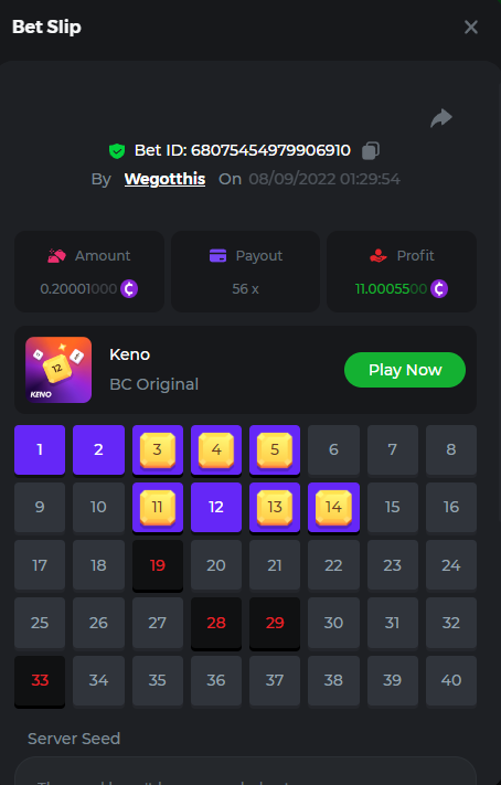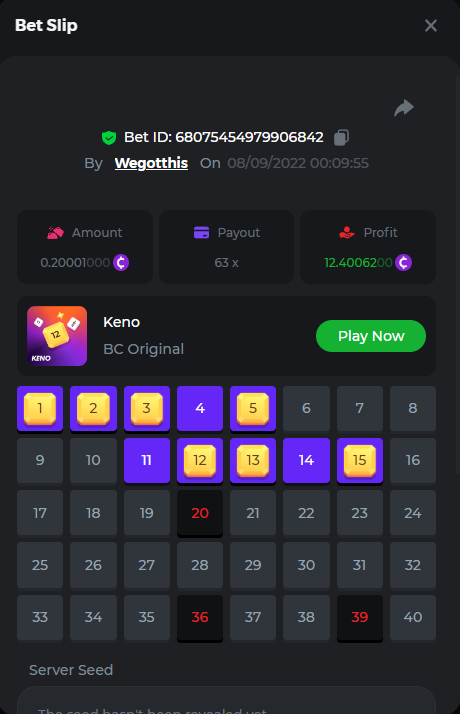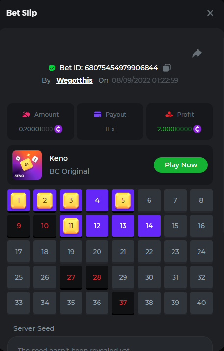 $2,500 Prestige Keno Multiplayer Challenge #45