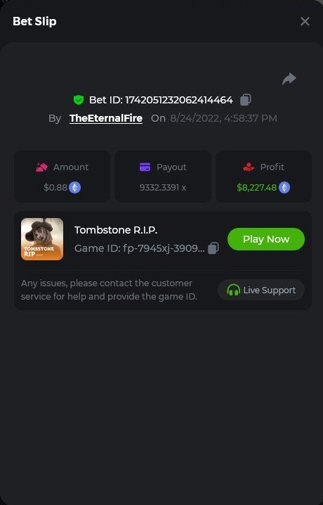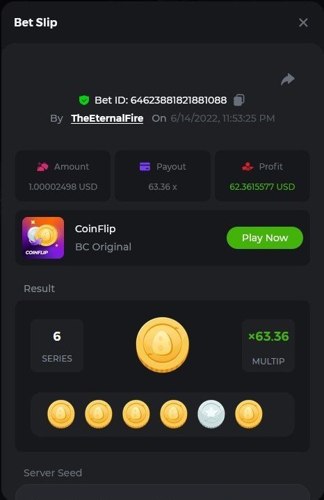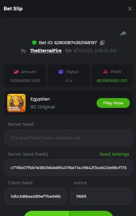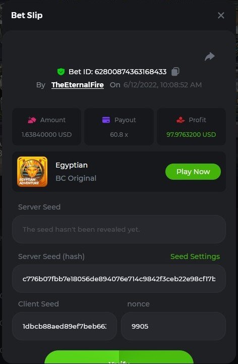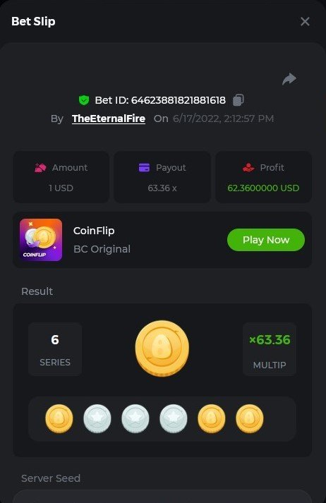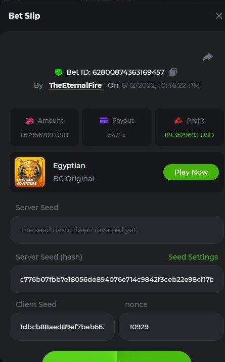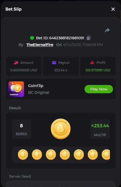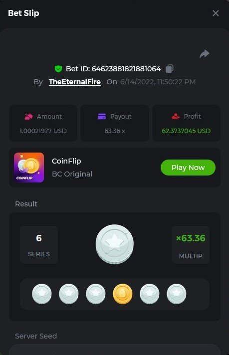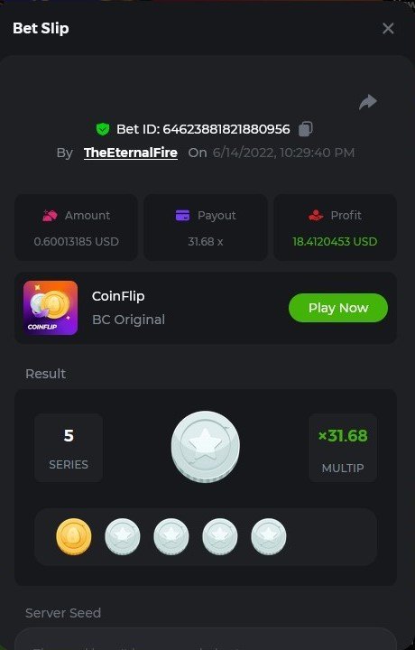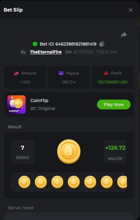X83: Bet ID: 129193616991060246 https://bc.game/#/sd/116KJZBU600TUB ----- X130: Bet ID: 129444142433436075 https://bc.game/#/sd/116NAN0FM7WIS3 ---- X58: BET ID: 129619304084669553 https://bc.game/#/sd/116P9N5XJH32TV ---- X420 Bet ID: 129619304084671976 https://bc.game/#/sd/116PHFI0T492QB -