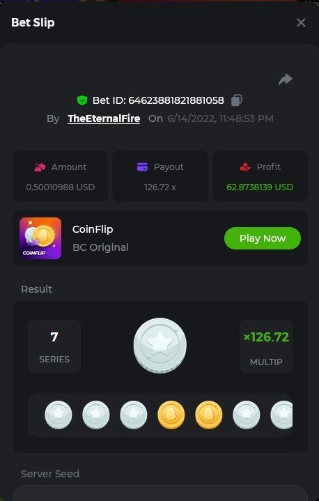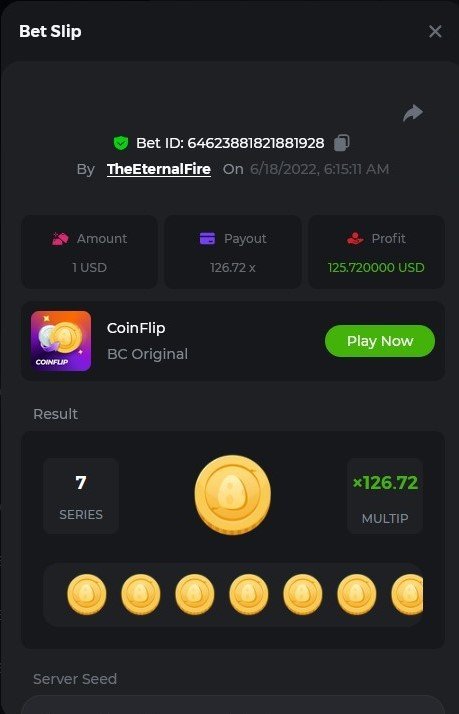 X11: https://bc.game/#/sd/112PB1RDW4KFF7 Bet ID: 114234641036083200 ------ X37: https://bc.game/#/sd/112PHIK3WYMO7N 114243351229761342 ----- X130: https://bc.game/#/sd/112PZL769BY70Z Bet ID: 114348912935960929 ----- X1000 : https://bc.game/#/sd/112P0AO42TDY4Z Bet ID: 114172076247483052 -