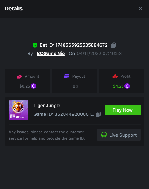$1,500 Weekend Multiplier Battle Hey VIPs! Looking for something fun to do this weekend? Why not take part in our most recent event and win some great prizes? We are starting a three-day battle with the Booongo provider. The event will be held from November 4, 12:30 pm GMT until November 7, 12:30 pm GMT. To be eligible for the prize, you must participate and get the highest multiplier possible on the games below. Check it out now, and good luck! - (details further down). Duration: 04/11/2022 12:30pm – 07/11/2022 12:30pm UTC Prize Pool: $1,500 Eligible Games: Play below games to participate in this event: Happy Fish Tiger Jungle Sticky Piggy Aztec Fire The highest multiplier reached in each game will be added together and counted as total points. Bonus buys are allowed. If the player submits multiple winning entries for the same game, the entry with the highest multiplier will be valid. Minimum VIP Tier Must be VIP04 or higher in order to enter this event. Minimum Payout Minimum payout to qualify is 10x (in any game) for a valid entry. Minimum Bet Size Happy Fish - $0.20 Tiger Jungle - $0.25 Sticky Piggy - $0.20 Aztec Fire - $0.20 Eligible Coins All cryptocurrencies are eligible (excepting JB, and BCL). Free Play Mode is not valid for this event. Prize Pool & Reward Breakdown The winners will win a share of the prize pool based on the detailed ranking below. All other participants who complete all minimum requirements will receive a 35% share of the prize pool. How to Enter Access the game to select your Bet ID, click on the Share icon (↷) and then Copy link. Return to the topic, paste the link in the field "Reply to this topic..." E.g.: https://bc.game/#/sd/10WH816CBTJPQR In the same post, upload a screenshot of your win by clicking the game ID WITH VIEW IN USD mode ENABLED (accessible at the bottom of dropdown menu for your wallet up top, and Submit Reply. Done! This way, we can ensure that your bet indeed met the minimum requirement at the time of placing it: https://bc.game/#/sd/10WH816CBTJPQR Additional Rules: Please combine all of your hits together in a SINGLE post. Edit your existing post for additional hits, don't create a new post. Each eligible entry must have the Bet Slip URL, failure to include it will disqualify participation in the event. Bet Slip image is not mandatory. Bets must be posted within 24 hours of placing bet in order to keep things fair for everyone. Bets must be made during the specified time window stated above. This thread will lock automatically when the time period is over. One (1) entry per household. Anyone found attempting to win multiple prizes will be disqualified from this challenge as well as all future challenges. Failure to follow instructions will result in your submission being null and void. By entering this challenge, you acknowledge that BC.Game has the final decision on results and placement. Payouts will be distributed after the event is finished. Please note that it could take anywhere between 24 hours to 7 days after the completion of the event.