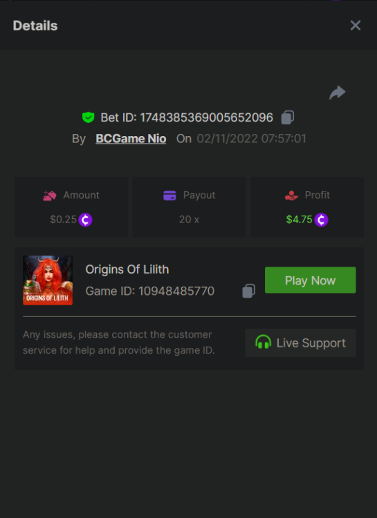 Starts: 02, November 12:30pm GMT Ends: 09, November 12:30pm GMT Hey Everyone! We are ecstatic to be back in Spinomenal to host our Top Tier battle. This week, your challenge is accomplishing the highest multiplier in six selected games. The prize pool of up to $4,000 will be split among the winners, and to make it even more exciting, any participant who completes the extra bounty will receive an equal share of 10% of the prize pool. With incredible odds and a vast reward up for grabs, join us in this fantastic event! – (More details below). Eligible Games Win the highest multiplier on the Spinomenal games listed below Book Of Muertos Fortuna de los Muertos II Fortuna de los Muertos Retro Muertos Book of Skulls Origins of Lilith The highest multiplier reached in each game will be added together and counted as total points. Bonus buys are allowed. If the player submits multiple winning entries for the same game, the entry with the highest multiplier will be valid. Minimum VIP Tier Must be VIP04 or higher in order to enter this event. Minimum Payout Minimum payout to qualify is 10x (in any game) for a valid entry. Minimum Bet Size Book Of Muertos - $0.10 Fortuna de los Muertos II - $0.20 Fortuna de los Muertos - $0.10 Retro Muertos - $0.20 Book of Skulls - $0.10 Origins of Lilith - $0.25 Eligible Coins All cryptocurrencies are eligible (excepting JB, and BCL). Free Play Mode is not valid for this event. Prize Pool & Reward Breakdown The winners will win a share of the prize pool based on the detailed ranking below. Anyone who completes the side bounty will receive a share of a 10% of the prize pool. BOUNTY - Share a bet that shows exactly 50x payout on any of the ten games within the timeframe of this event and you will receive a share of 10% of the prize pool! If nobody wins exactly the payout, the player/s closest to the payout will win this bounty! Original rules apply with a minimum bet, minimum payout & VIP. How to Enter Access the game to select your Bet ID, click on the Share icon (↷) and then Copy link. Return to the topic, paste the link in the field "Reply to this topic..." E.g.: https://bc.game/#/sd/10WCACW00MBJMB Each eligible entry must have the Bet Slip URL, the non-inclusion of the link will disqualify participation in the event. In the same post, upload a screenshot of your win by clicking the game ID WITH VIEW IN USD mode ENABLED (accessible at the bottom of dropdown menu for your wallet up top, and Submit Reply. Done! This way, we can ensure that your bet indeed met the minimum requirement at the time of placing it: Example post - Link: https://bc.game/#/sd/10WCACW00MBJMB Good luck everyone!