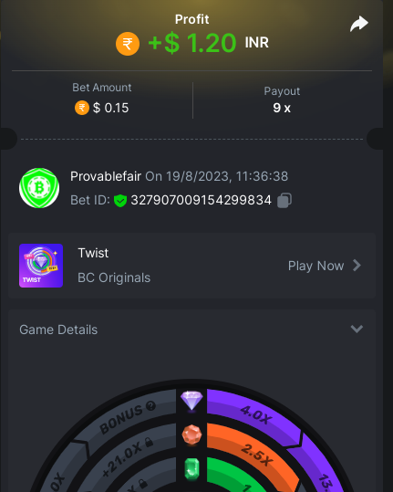 12. 9x 0.15 $ - https://bc.game/#/sd/11GAN5GXNPZVAF - Bet ID: 327907009154299834 15.5x 0.15$ - https://bc.game/#/sd/11GANLBG0FY0GZ - Bet ID: 327907009154300024