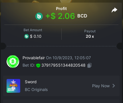 2. Bet 0.1$ - win 20.6x - link https://bc.game/#/sd/11TEI9S7O62CCB - Bet Id : 1791901757675299620