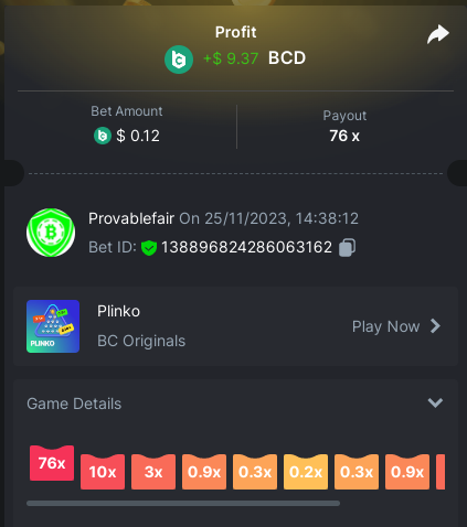 9. 20 x 0.1$ -https://bc.game/#/sd/11HT7GJSRKM8HR - Bet ID 379179551344820548 21.8 x0.1$ -https://bc.game/#/sd/11HT9MWWPP848V - Bet ID 379179551344820847 30 x 0.1$ -https://bc.game/#/sd/11HT5YP3UMVHW7 - Bet ID 379179551344820344 37.6x 0.1$ -https://bc.game/#/sd/11HTD75TOY2BGF - Bet ID 379179551344821085 50 x 0.2$ -https://bc.game/#/sd/11HTHJUIYQ8XZB - Bet ID 379179551344821978 53 x 0.1$ - https://bc.game/#/sd/11HT5F24NFE8NR - Bet ID 379179551344820285