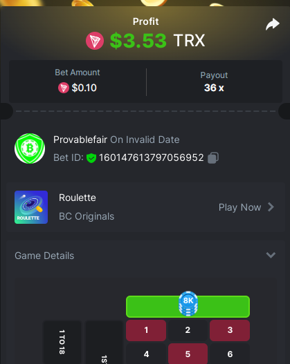 8. $ 0.15 - 5 SERIES - Payout 31.68 x - https://bc.game/#/sd/11I6FYAEN0V42F - Bet ID 333333588663599308 $ 0.15 - 6 SERIES - Payout 63.36 x - https://bc.game/#/sd/11I6HP4DJW705B - Bet ID 333333588663599412