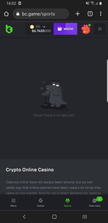 Website URL ( https://bc.game/sports ) Device & System: Samsung Galaxy S8+ Android 9 Chrome Feedback / Live bug / User experience: Sports section error. this happes too much Journey: "Oops! There is no data yet!"