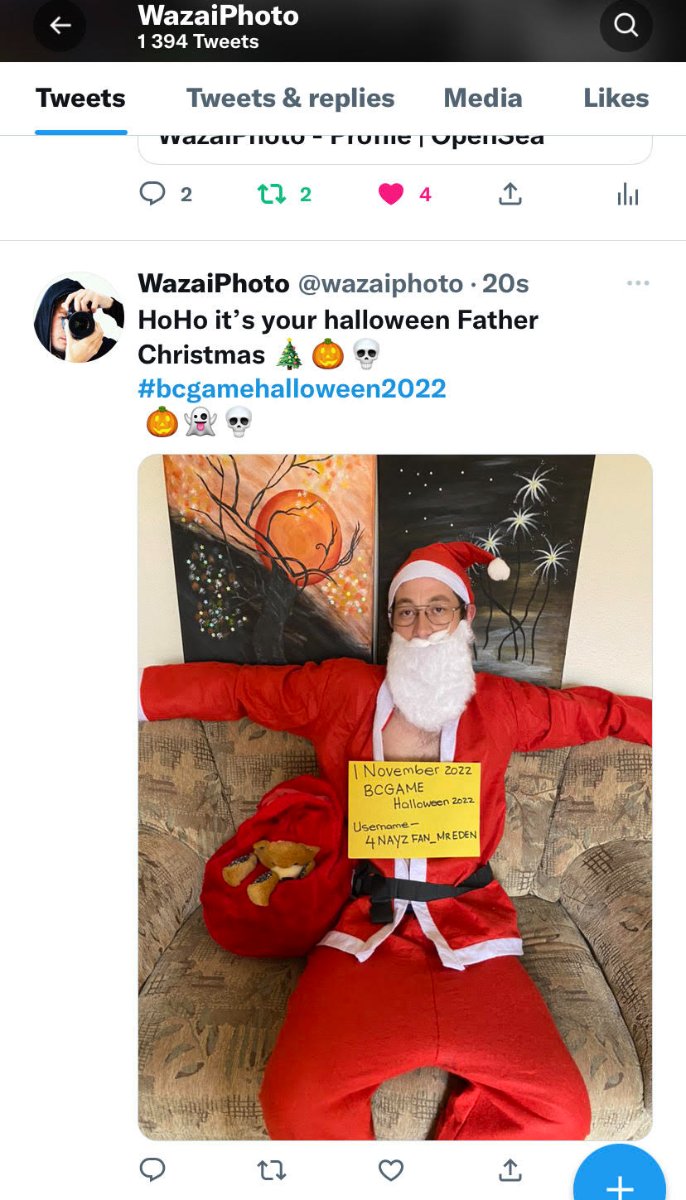 DATE - 01/10/2022 BCGAME Halloween 2022 Username - 4NAYZFAN_MREDEN HO HO I am your Halloween Father Christmas!