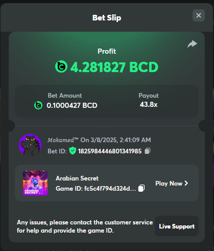 9-Get a 20x multi in the Arabian Secret slot game.