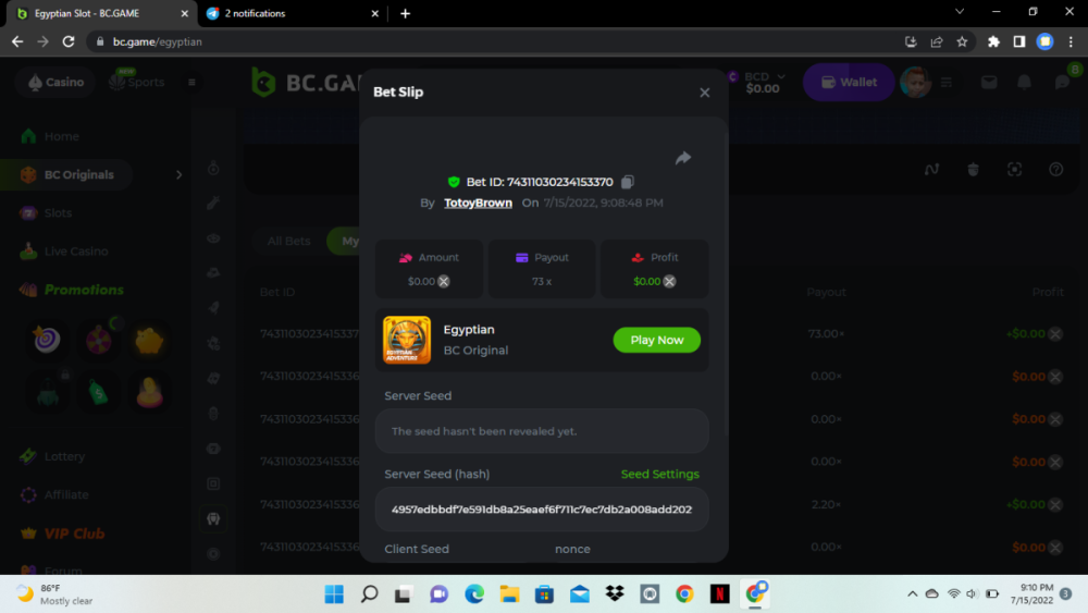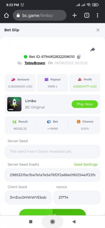 Game:Limbo Hunt: x100 and the last two numbers in the bet id must be 10