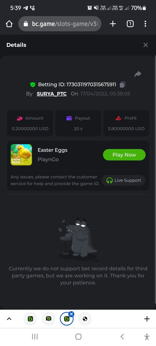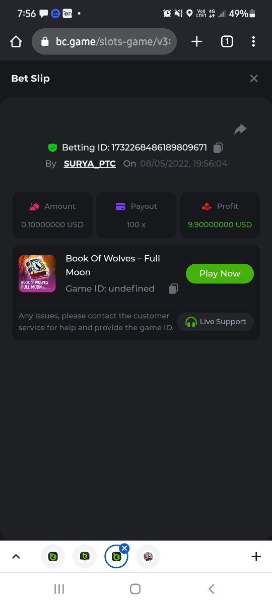 5. Easy 1. Username - surya_btc 2. Link- https://www.instagram.com/p/CcO-dLoDOyK/?igshid=YmMyMTA2M2Y= User name- surya_btc 3. Twitter username- @SURUA_WORLD 4. Twitter username- SURUA_WORLD 5. FB profile link-https://www.facebook.com/suresh.baranda 6. Cave of plunder 7.5x https://bc.game/sd/?sd=10IAMJJAJBKWSZ 10. 2FA Activated Hard 1. Wheel 49.5x https://bc.game/sd/?sd=10IAUN3PBK8NWZ Medium 1. Easter Eggs 20x https://bc.game/sd/?sd=10ILYILJPI8K5V