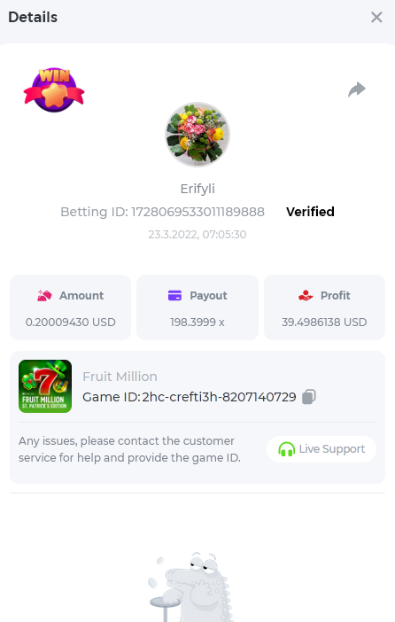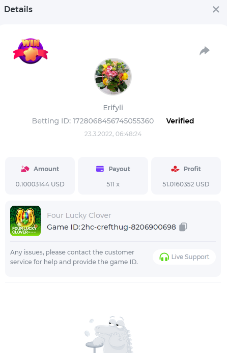 Betting ID: 1725030010104246400 534.60x Betting ID: 1725032592233159943 154.35x Betting ID: 1725487027814036096 325.45x Betting ID: 1725191868935935751 84x