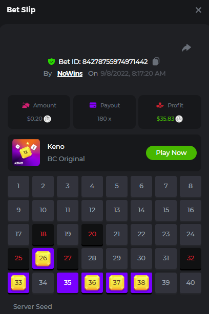 $2,500 Prestige Keno Multiplayer Challenge #45