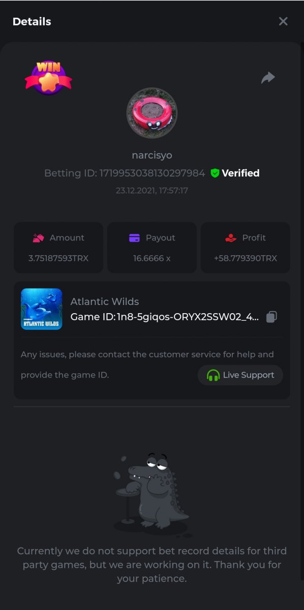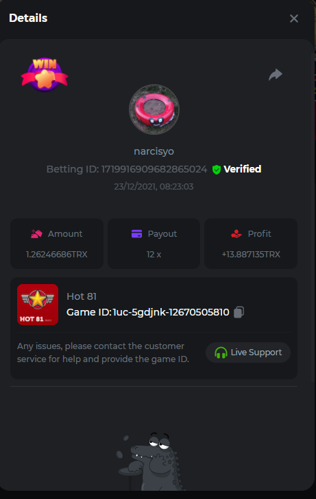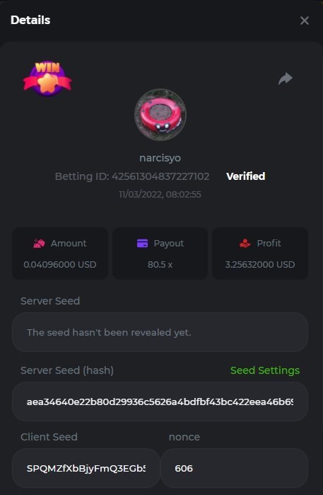 Got it, On Crash is ok. I have played on hash dice. Ty