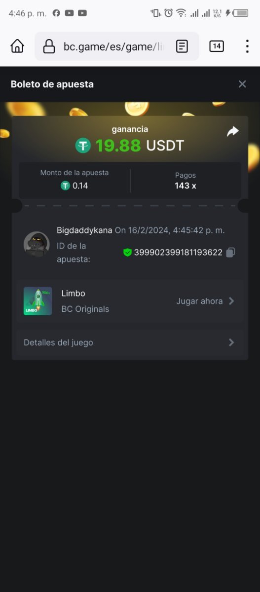 1. Medium Get a payout of 73.6x on the original Plinko game Risk-High, Row-10. https://bc.game/game-detail/1826943392161820961 Win a 96.96x Keno bet by selecting numbers 1, 14, 22, 28 (Risk: Medium). https://bc.game/game-detail/1827034824021283107 BC original Roulette Single game Win 36x on the on number 0. https://bc.game/game-detail/1827035766829926433 BC original Stellar Rush game Win 50x in the. https://bc.game/game-detail/1827073772802578467 HARD Limbo game is your target to win 200x or higher https://bc.game/game-detail/1826944288616437538 Plinko win 252x or higher in Row 14, High Risk https://bc.game/game-detail/1827028525647940642 Win on Wheel 48x or higher - Row 50, Segment High. https://bc.game/game-detail/1827030430100128802 BC Originals Slot Sea Of Olympus 1000 score a win 100x or higher. https://bc.game/game-detail/1827034006411754531 Get 200x or higher in the Hash Dice game. https://bc.game/game-detail/1827037167962733857 Easy Deposit at least $50 USD Win a payout of 20x on the original Limbo game. https://bc.game/game-detail/1826943828074409251 Get a 20x multi in the Arabian Secret slot game. https://bc.game/game-detail/1827029926712983074 Get a 30x multi in the Sugar Fiesta 1000 slot game. https://bc.game/game-detail/1827029023467372577 Follow BC.GAME on Instagram, take a screenshot, and share it with your IG username in the forum! Ig @kanaimacg