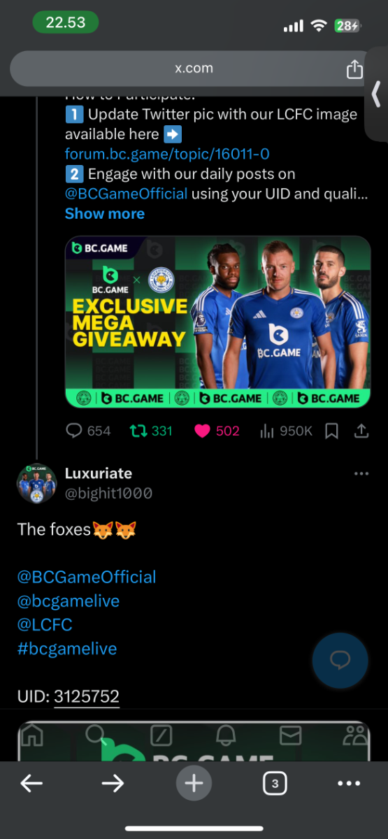 1. x account: @bighit1000 (https://x.com/bighit1000) Bcgame UID: 3125752 (https://bc.game/#/user/profile/3125752)