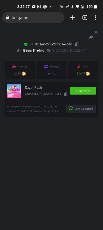 Total Score: 541.65X Bounty: No _____________________________________________________________ Sun of Egypt 3 = 110X https://bc.game/sd/?sd=10NB4O4QYQNJTF Caishen Wealth = 39X https://bc.game/sd/?sd=10NB4WMPJ8DNV7 Hit the Gold! = 42X https://bc.game/sd/?sd=10NB6OBPYOGDUB Tiger Jungle = 226.6X https://bc.game/sd/?sd=10NB72D2O8WZYR Candy Boom = 73.5X https://bc.game/sd/?sd=10NBBZD0HF8C2B Happy Fish = 44.55X https://bc.game/sd/?sd=10NBS5UG9MQO0J -