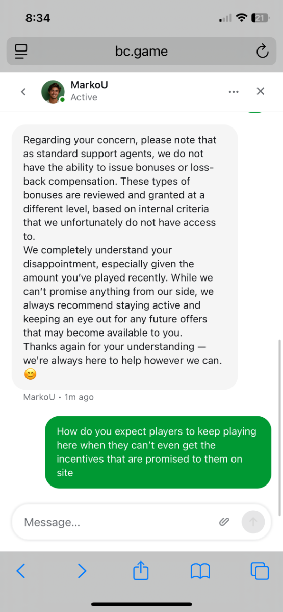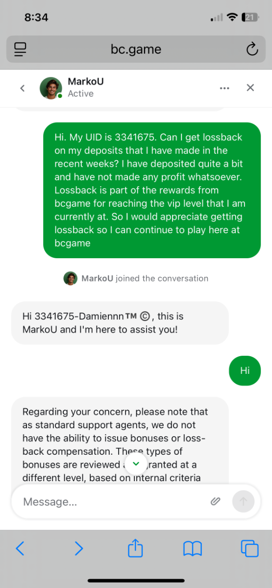 on July 1st, (my birthday) I asked support about being able to get a birthday bonus and they told me no and that I no longer have vip host services. Which is so wrong, on multiple levels. A vip host is part of the rewards you get for playing at bc.game, which I 100% put in the time, money and work to be able to have these rewards.
