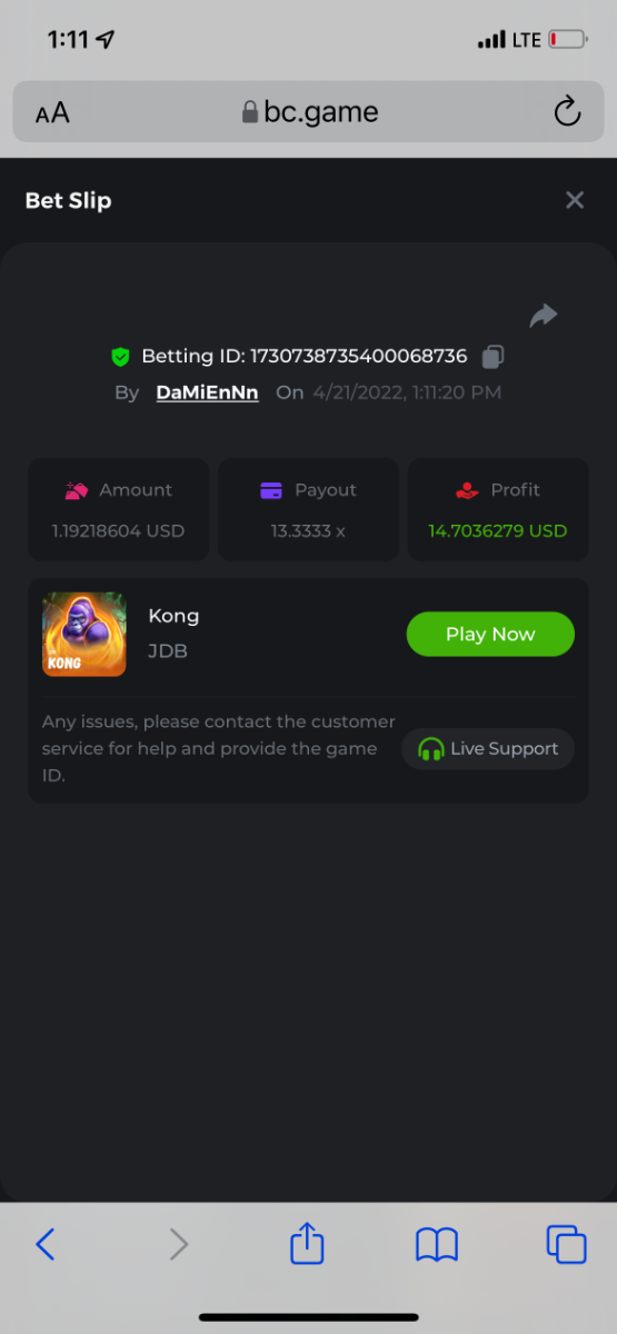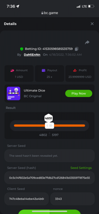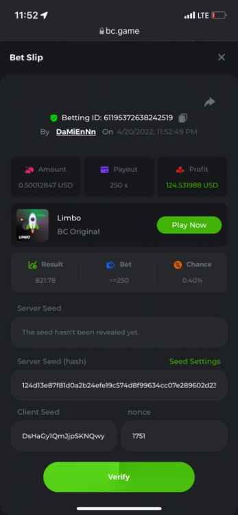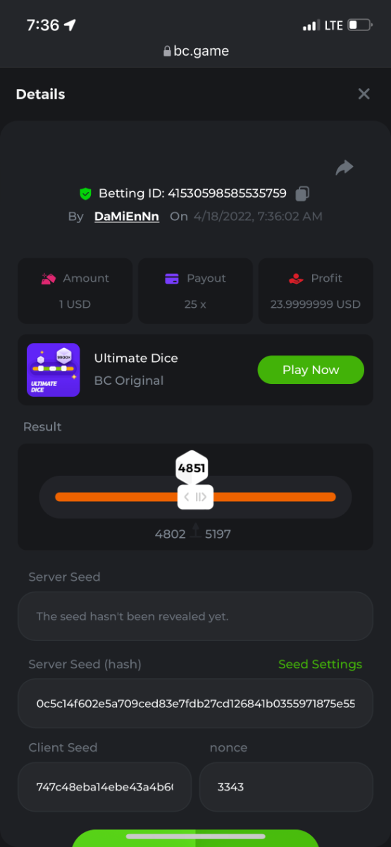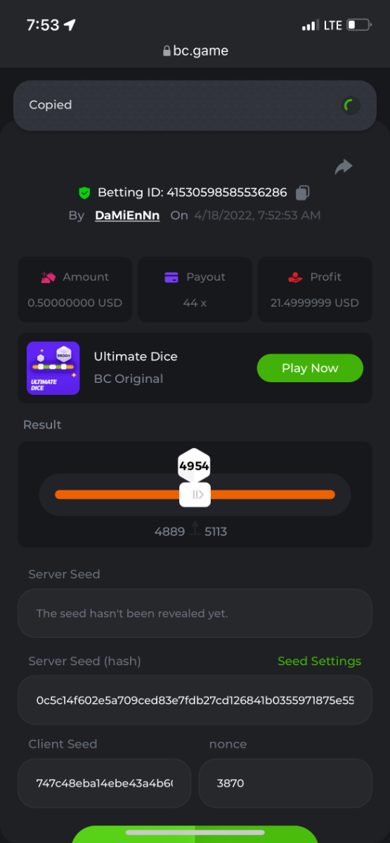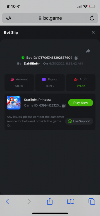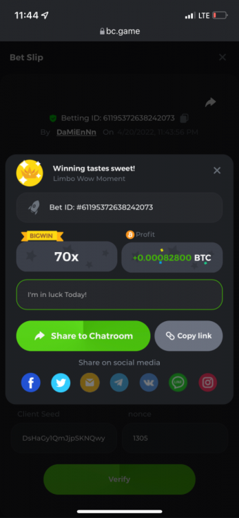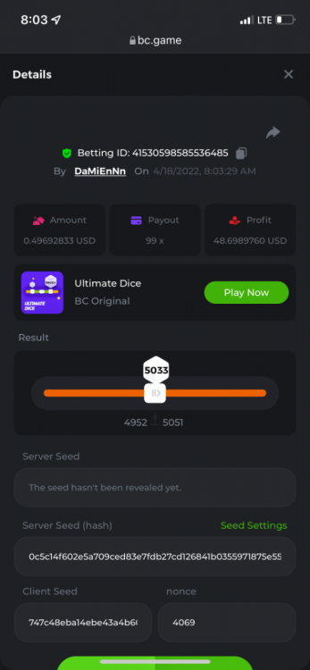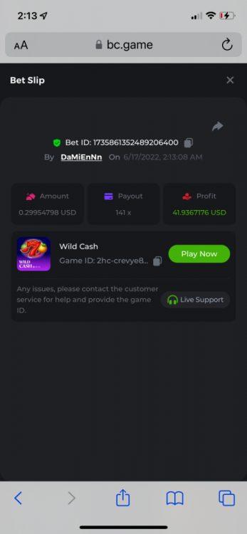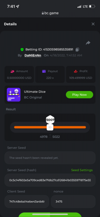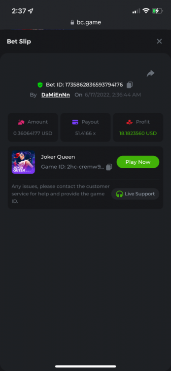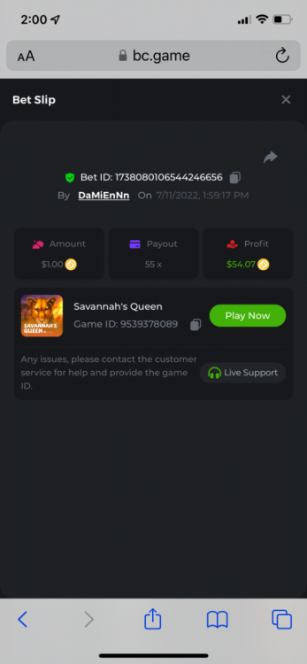 2. Limbo $2.00 bet 100x Limbo-Win 74011280171599051 7/15/2022, 9:47:30 AM $200.00 ☝lost bet ID link. So copied and pasted from my wallet transactions. https://bc.game/sd/?sd=10ORWSSCI1A58Z $4.00 bet 20x https://bc.game/sd/?sd=10ORXEQA92L4B7 $0.25 bet 500x Bounty.