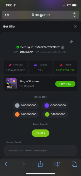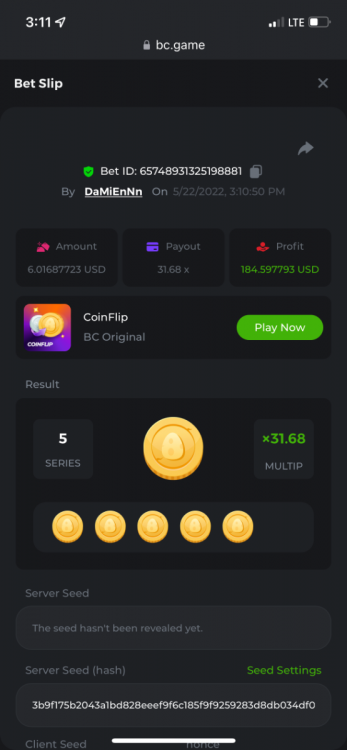 5. https://bc.game/sd/?sd=10O6BAU0ZBZQC3 30x $1.00 bet https://bc.game/sd/?sd=10O6BR73ZJH1QR 1046.67x $1.00 bet https://bc.game/sd/?sd=10O6C9TS5YV5EB 98.63x $10.00 bet