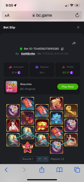 1. https://bc.game/sd/?sd=10OY9ADWZQX4B7 35.5x $0.1 bet https://bc.game/sd/?sd=10OY9YIM4Q25N7 36x $0.20 bet https://bc.game/sd/?sd=10OYBIE0SQC8B7 21.5x $0.10 bet