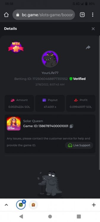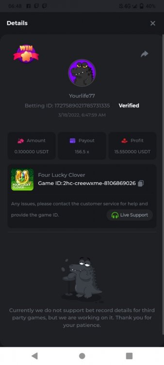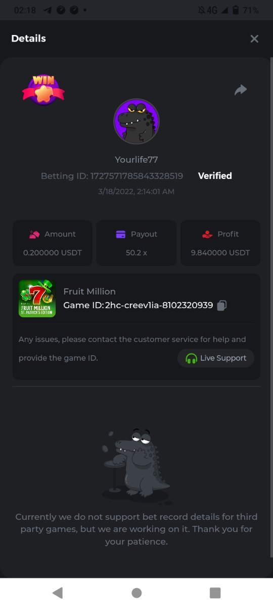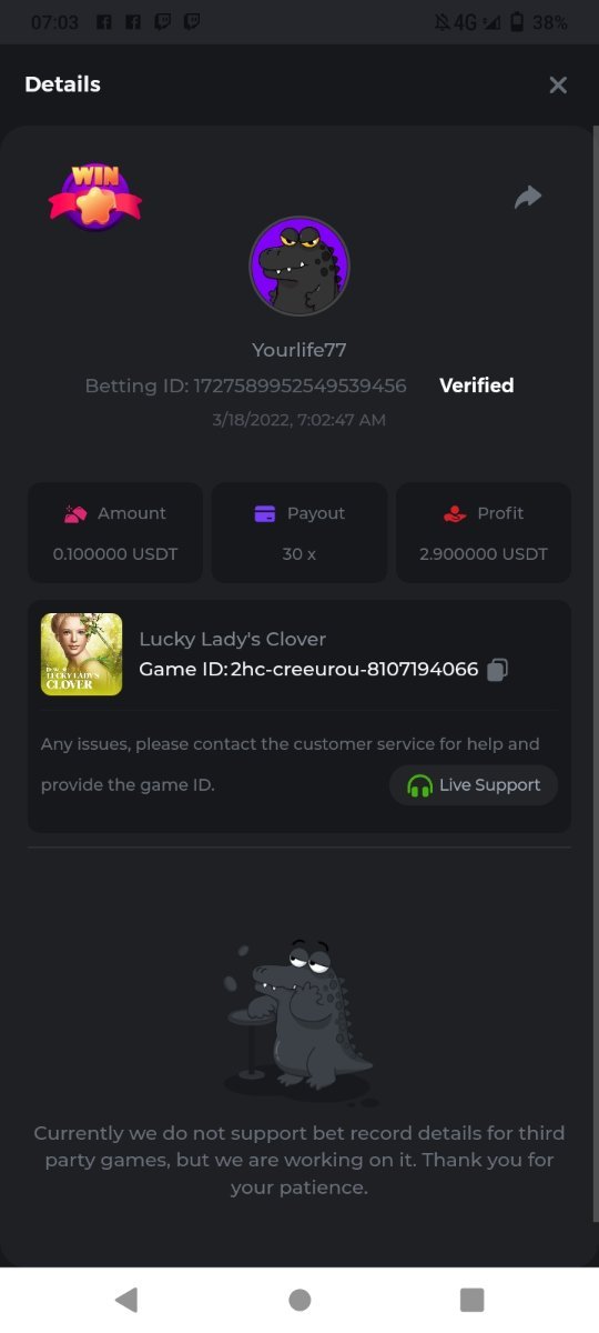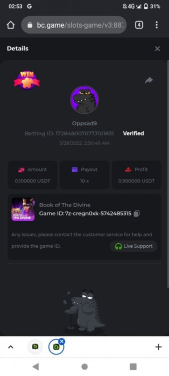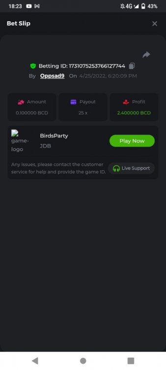 7. Hit the gold Betting ID: 1725059292811470087 Golden dancing lion Betting ID: 1725058790545249152 Tiger jungle Betting ID: 1725058501611886464 Solar queen Betting ID: 1725060468877351552
