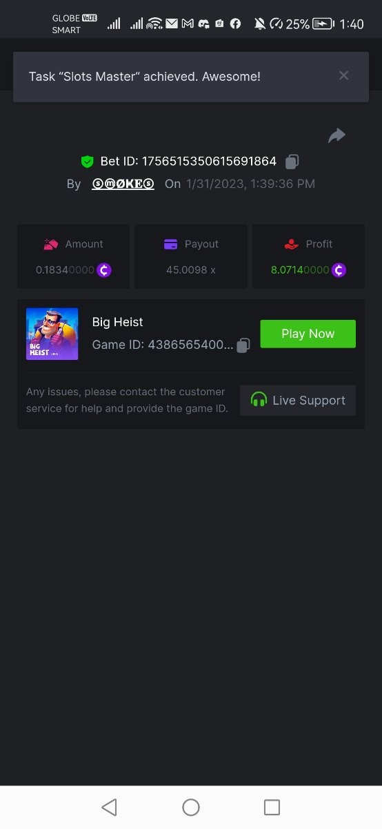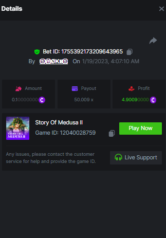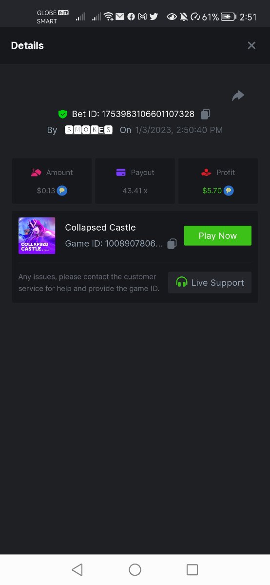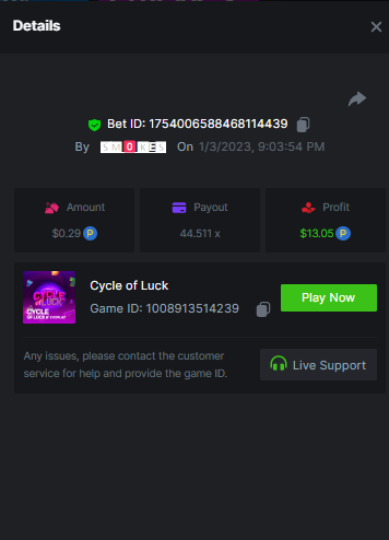 https://bc.game/#/sd/110M1ABM7Q6HW3 cycle of luck- 44.511x https://bc.game/#/sd/110LE1MUA3D8GJ collapse castle 43.41x