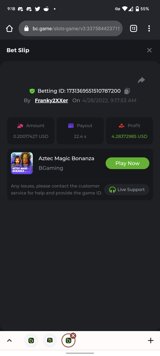 EASY: 1. Follow Instagram: whiteazn92 2. Post Photo/Video Tag BC.game: whiteazn92 https://www.instagram.com/p/CcUctBSu5Om/?utm_source=ig_web_copy_link 3. Follow BC on Twitter: Franky2XXer 4. Like and Retweet latest BC post: Franky2XXer 5. Follow BC Facebook page: Luke Hall 6. Cave of Plunder 7.50x: 7. 8. 20x multi Amatic Lady Fruits 100 Easter: 9. 30x Multi Gamomat Ramses Book Easter Egg: 10. Complete MEDIUM: 1. 10X Multi PlayNGo Easter Eggs: 2. Roulette Single Bet 0 (36X): 3. Get a 76x win on Plinko: 4. 60X Multi Wazdan Power of Gods Medusa Easter: 5. 6. 7. Keno Single 7, 8, 30 Medium Risk: 8. 90X Multi Big Time Gaming White Rabbit: 9. Black-Jack Only Red Cards: 10. HARD: 1. Wheel 49.5X: 2.PLINKO 420X: Bet ID#: 60146842272279722 3. Limbo 500X Multi: 4. 5. 6. 7. 8. 9. 10.