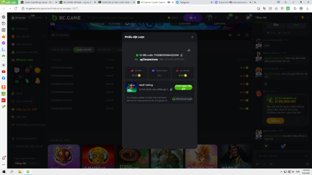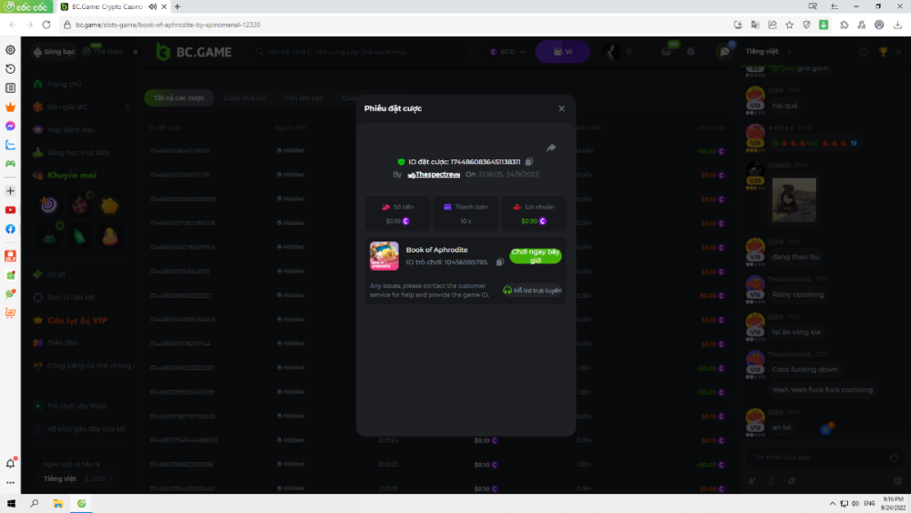 1: The first time I discovered the error was when I bet if I win or lose my money stays the same 2: please tell me why still not fix bcd unlock error i spent $4000 to unlock but i think this is $5000 to qualify 3: This update, the game auto is no longer as smooth as before because of lag 4: sports bets crashed because it can't view bets because need to login while i'm already logged into the game and reloading the site still doesn't work this is a fatal error 5: I'm Vietnamese, is this a drop error? if not then fix it ASAP as this is a casino for all players not a place to be racist if you make them 6: the betting system is slow, let's make it smoother 7: This is the next error when I get the shitlink but it fails and the website is in the same situation 8: I can for example if the user is in Vietnam, when entering the game, be on the Vietnam chat channel instead of the Global channel.