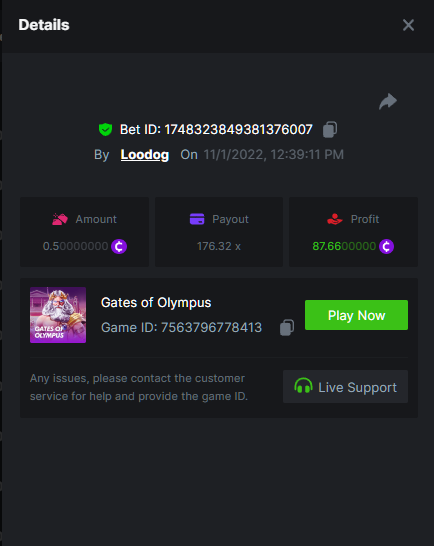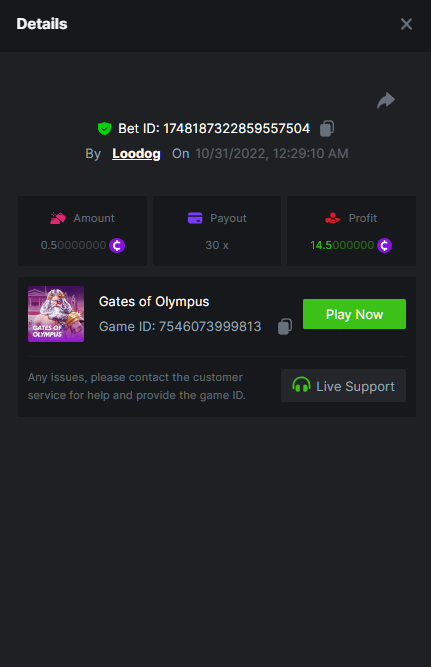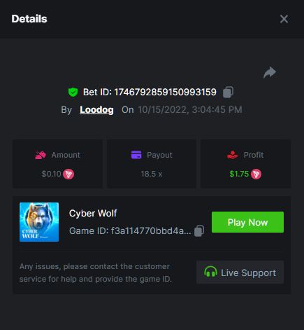 • Favorite Game Hash Dice