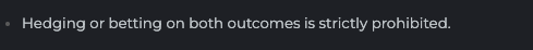 DDDooobbboooiii Posted August 31, 2022 Share Posted August 31, 2022 1 hour ago, Mugen said: GUYS this rule is a must !!! no HEDGING OR BETTING BOTH OUTCOMES!!!! Nice Drewew Link to comment Share on other sites More sharing options...