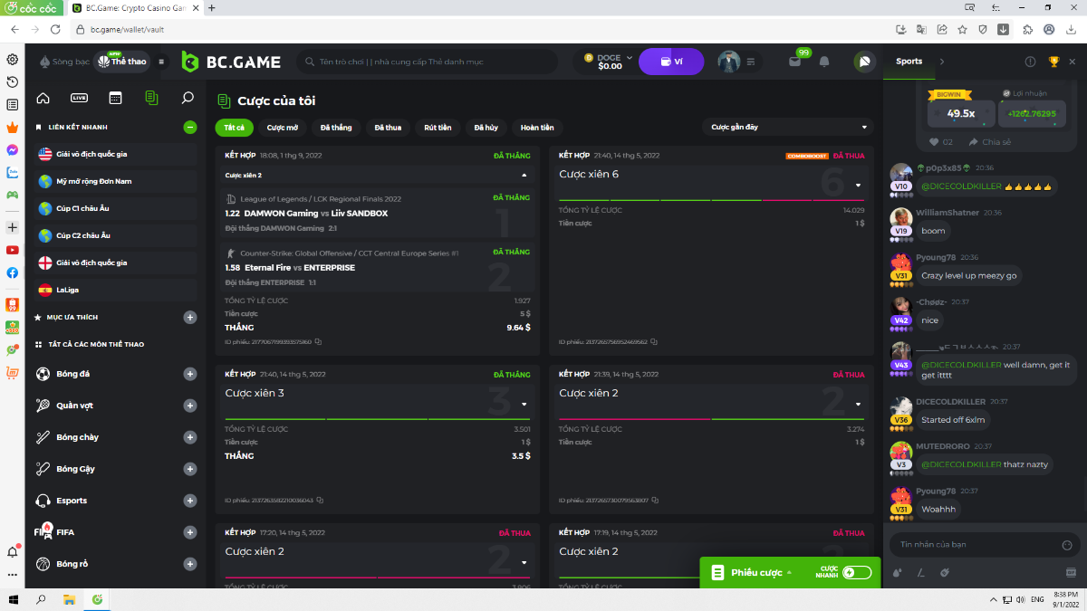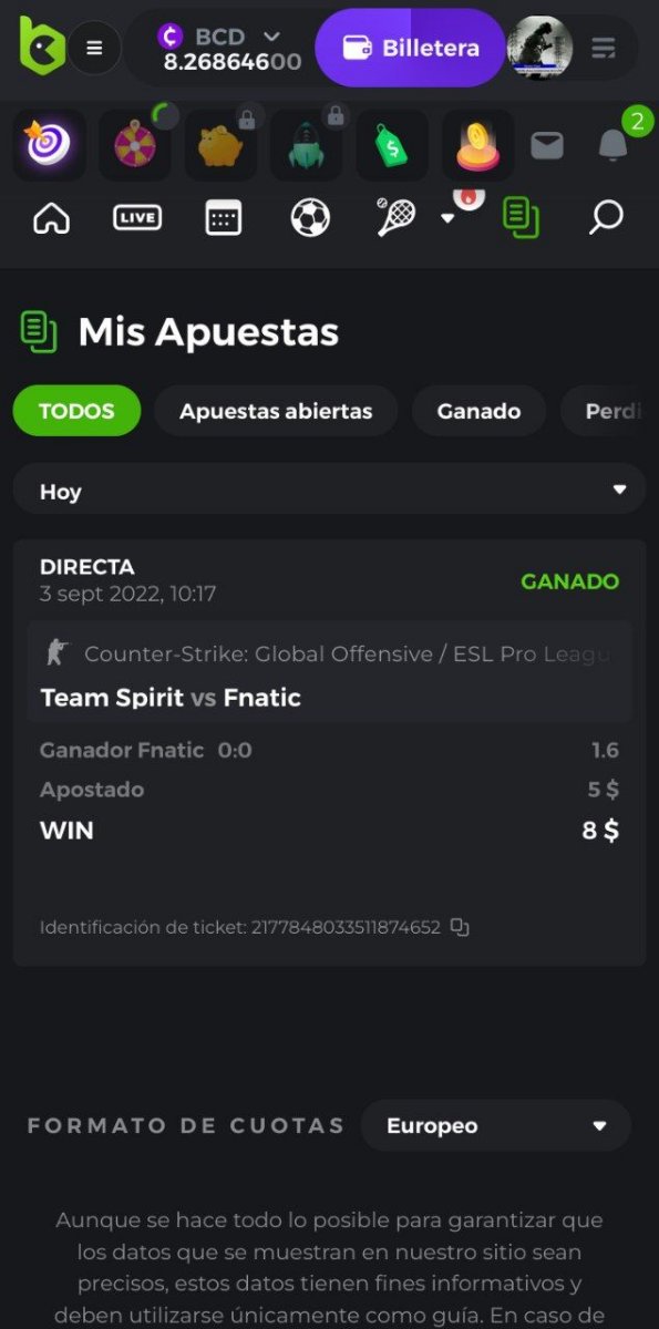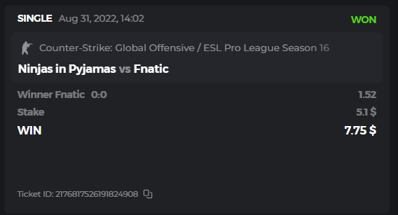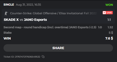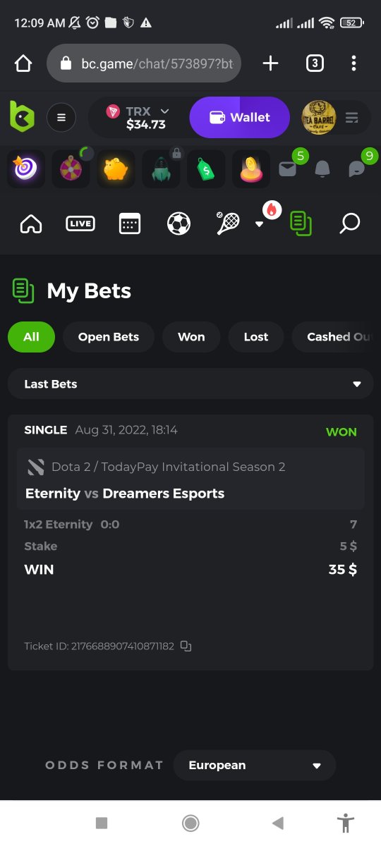 BCGAME_Bil Posted August 28, 2022 Share Posted August 28, 2022 E-sports Show off & Grab 300$ ! Start: 30, Aug 00:00 UTC Ends: 6, Sep 23:59 UTC Hello, ladies and gentleman! THIS IS A SPECIAL EVENT for E-sports fans! Show off your E-sports bet winnings, and stand a chance to grab our giveaway reward! What is the challenge? Place an E-sports single bet (winner / total map / Handicap and etc.) to qualify for the show-off. Any of the E-sports bet league is acceptable. Multis & Combo parlay are not acceptable. The winners will be determined based on the HIGHEST USD winning amount, followed by the second, and so on. Higher bet amount will significantly increase the chances of taking the top spot. Minimum VIP No minimum VIP Level. Minimum Odds requirement Minimum odds 1.5(European) and above. Minimum bet size Equivalent to US$ 5 and above Eligible currencies All cryptocurrencies are eligible (except JB,BCL) Rewards available 1st place....... $100 2nd place..... $50 3rd Place...... $30 4th Place...... $10 5th Place...... $10 The remaining $100 will be split among all other participants who meet the minimum requirements and minimum stake. How to enter: To participate, post your Ticket ID, along with your ticket id link & screenshot, as a reply to this thread as follows. If you don't know how to get your sports betting link, go here! Along with the screenshot of your ticket. Providing the bet link is not mandatory Example : Ticket ID: 2175619958053155000 If the selection result in a void or postponement, the ticket ID will not be counted. Cashed out bets will not be counted. Hedging or betting on both outcomes is strictly prohibited. Please combine all your hits into a SINGLE post. Edit your existing post if you achieve a higher result, don't create a new post. Bets must be placed and settled during the time window specified above. This thread will automatically lock when the time period ends. One (1) entry per family. If someone finds multiple prizes, they will be disqualified from the challenge as well as all future challenges. Failure to follow the instructions will result in the cancellation of your submission. By entering this challenge, you acknowledge that BC.Game has final decision rights over results and placement. Link to comment Share on other sites More sharing options...