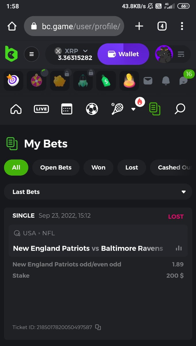 BCGAME_Bil Posted September 14, 2022 Share Posted September 14, 2022 NFL 50% Cashback ! ________________ Starts: 16 , September 02:00 AM UTC Ends: 27 , September 01:59 AM UTC Hey BC Players! Let’s celebrate with our latest guaranteed promotion! This time, we guarantee 50% cashback on your loss, up to US $100 ! Don’t miss this amazing chance ! Rules: Place a bet on any American Football NFL game and get a guaranteed 50% cashback if you lose! Only one(1) single bet per person is accepted. Bet result with “lost” is valid to submit the ticket id. For multiple valid ticket id submitted, only the highest amount will be entertained. Single bets only - Multis & Combo parlays are not acceptable. Hedging is strictly not allowed。 Minimum VIP Minimum VIP 4 Level and above. Minimum Odds requirement Minimum odds 1.5(European) and above. Minimum bet size Equivalent to US $5 Eligible currencies All cryptocurrencies are eligible (except JB,BCL) How to Participate : Post your Ticket ID, along with your ticket id & screenshot, as a reply to this thread as follows. Providing the bet link is not mandatory. Example for reference : Ticket ID: 2178076114965115642 If the selection results in a void or postponement , the ticket ID will not be counted. Cashed out bets are not eligible. Hedging is strictly not allowed. Create a SINGLE post. If you get a better result, edit your existing post , don't create a new post. Bets must be placed & settled during the time window specified above. This thread will automatically lock when the time period ends. One (1) entry per family. If someone attempts to claim multiple prizes, they will be disqualified from the challenge as well as all future challenges. This may also result in account termination. Failure to follow the instructions will result in the cancellation of your submission. By entering this challenge, you acknowledge that BC.GAME has final decision rights over results and placement. Cashback will be paid in BCD up to a maximum of $100. Link to comment Share on other sites More sharing options...