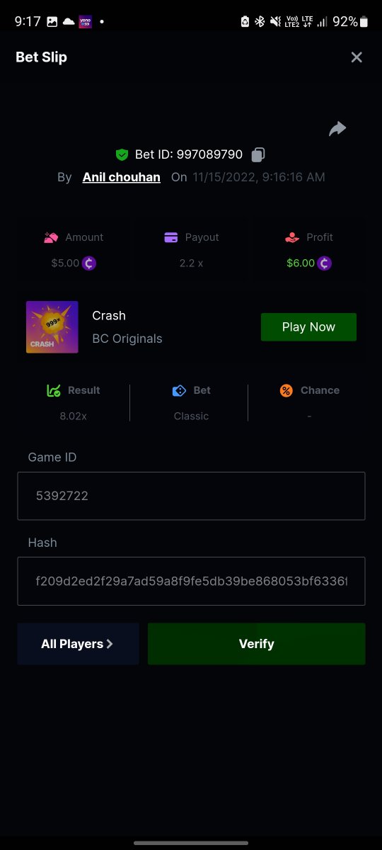 Anilsalvi Posted November 15, 2022 Share Posted November 15, 2022 Bet link : https://bc.game/#/sd/10X7NP3J1L1FRN BetID : 997089790 World Cup Champion: Belgium Link to comment Share on other sites More sharing options...