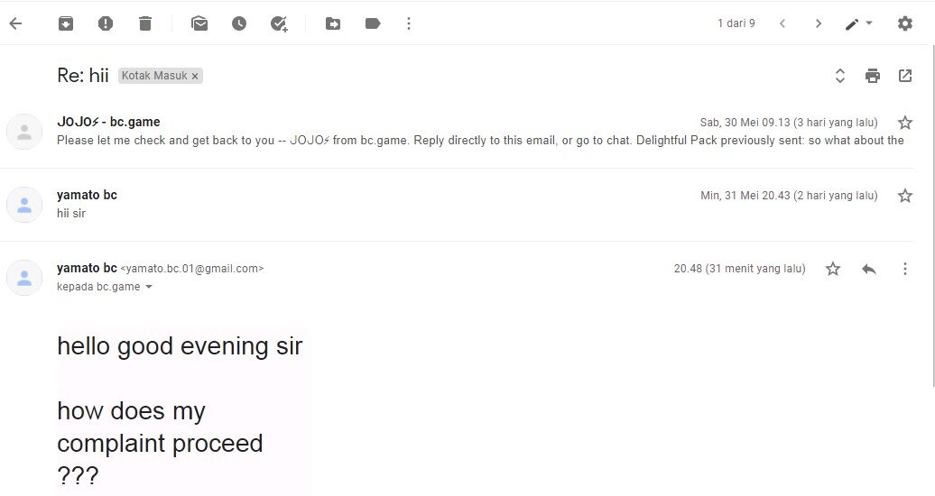 Admin BC_Jack Posted June 20, 2020 Admin Share Posted June 20, 2020 1 hour ago, علی مسیح said: Kindly share an email to [email protected] with the following information: Subject of mail: Account risk recovery email 1. Name 2. Level 3. Deposit records from your wallet 4. Username on BC Game 5. Any other relevant information related to the account Our backend team will review it get back to you! Link to comment Share on other sites More sharing options...