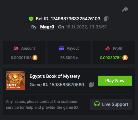 Egypt's Book of Mystery - https://bc.game/#/sd/10XRGZ7OZ9K2KZ