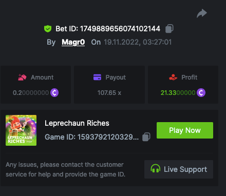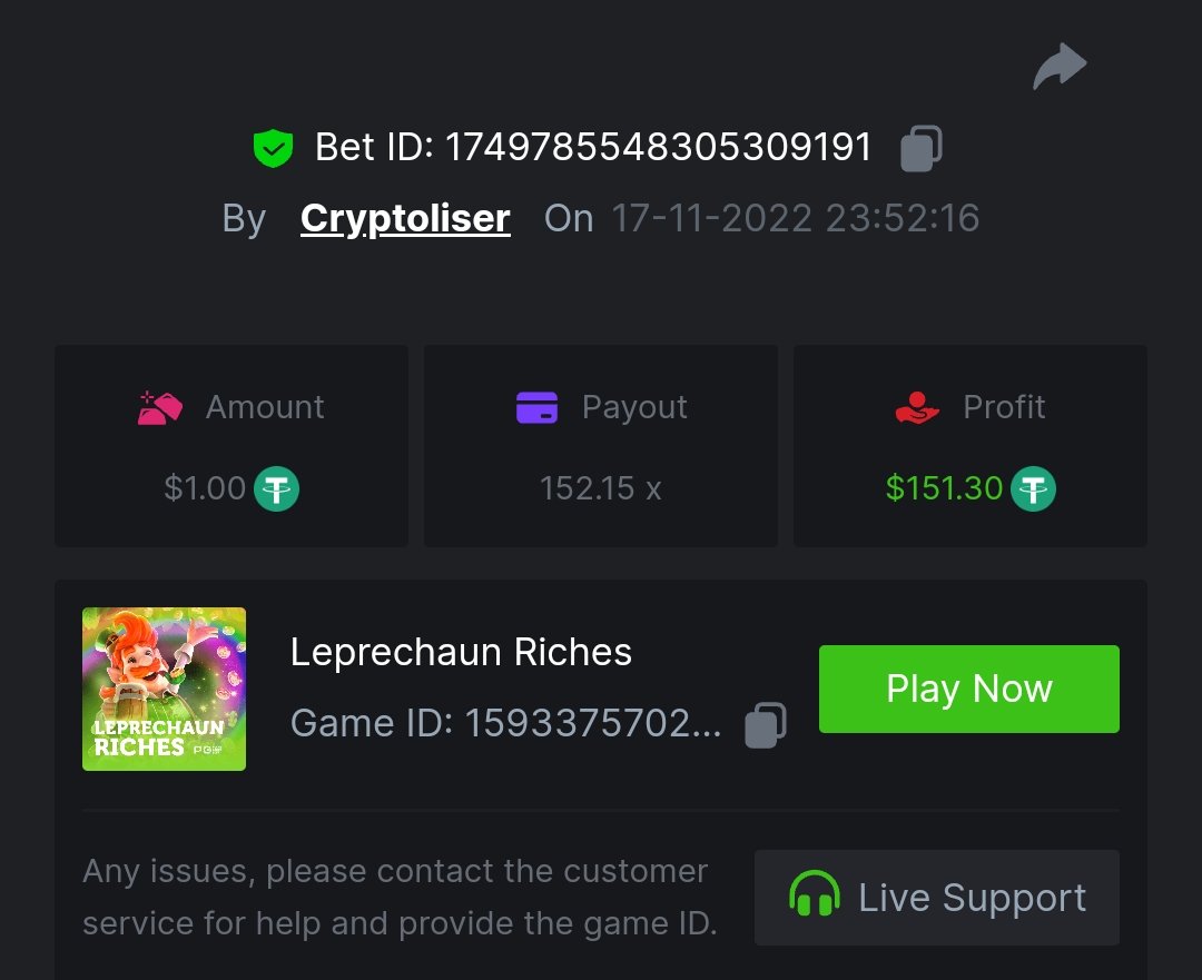 Leprechaun Riches - https://bc.game/#/sd/10XHJG7M9Z30UR