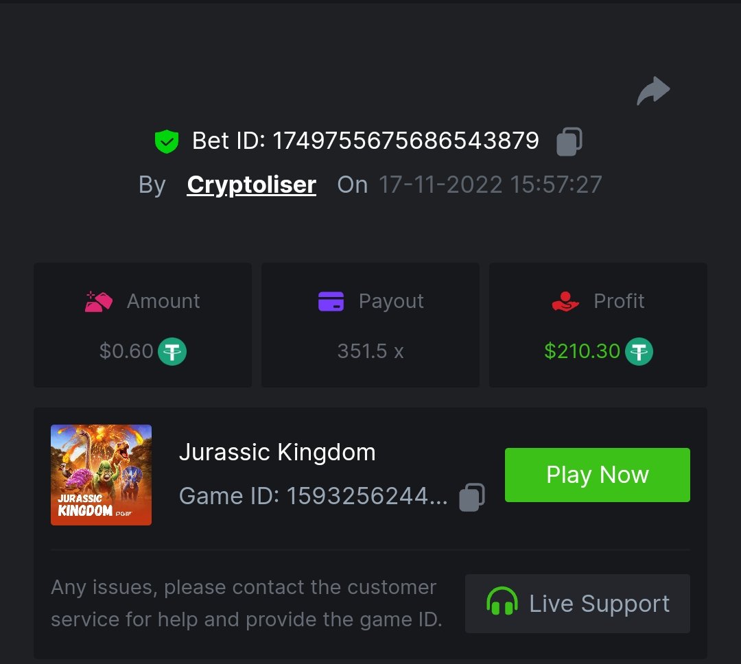 Jurassic Kingdom - https://bc.game/#/sd/10XRKPC8IYJ6S3