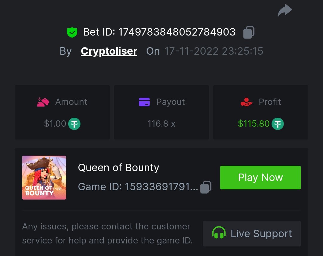 Queen of Bounty - https://bc.game/#/sd/10XRJ0B9BOV503