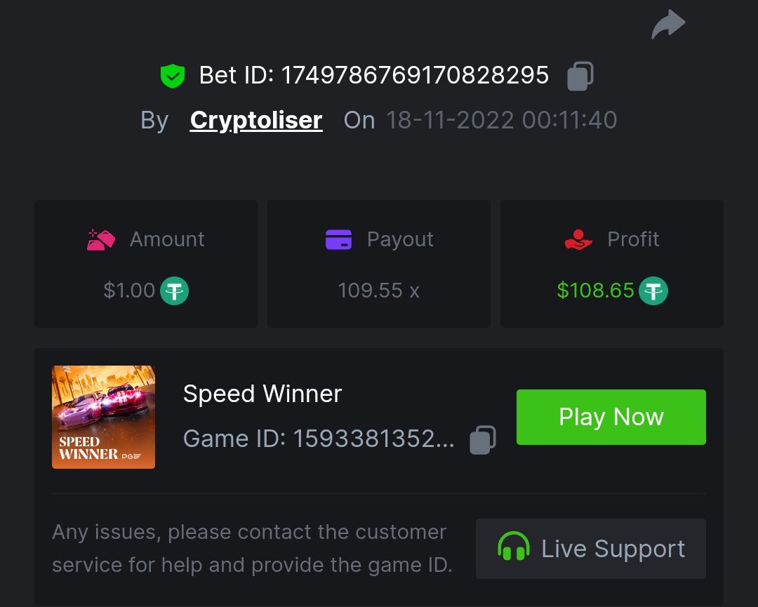 Speed Winner - https://bc.game/#/sd/10XRLU1GHTD34J