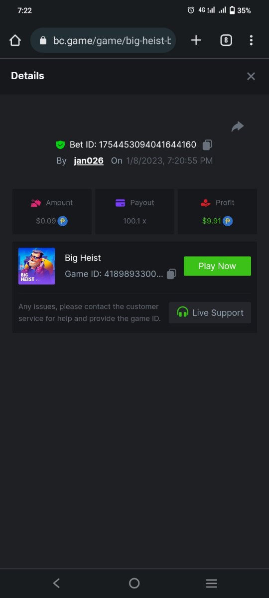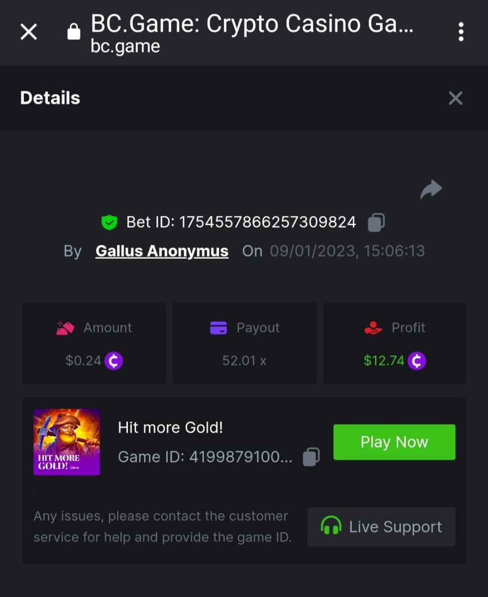 new Posted January 9, 2023 Share Posted January 9, 2023 Green Chilli 24.5x https://bc.game/#/sd/110OJ89UHJSSGJ Happy Fish 42x https://bc.game/#/sd/110OJV0F3EHQFN Aztec Fire 43.5x https://bc.game/#/sd/110OK0PHTHOM4Z Aztec Goddess of Egypt 64.5x https://bc.game/#/sd/110OKI7KE9RSPF Hit More Gold 11.2x https://bc.game/#/sd/110OKO11P2XK43 Sticky Piggy 10x https://bc.game/#/sd/110OKRWVW9JYMR Rio Gems 55x https://bc.game/#/sd/110OL5FR2QYI37 Big Heist 216.5x https://bc.game/#/sd/110OL9RZSV90K3 Black Wolf 130x uh oh lost it Link to comment Share on other sites More sharing options...