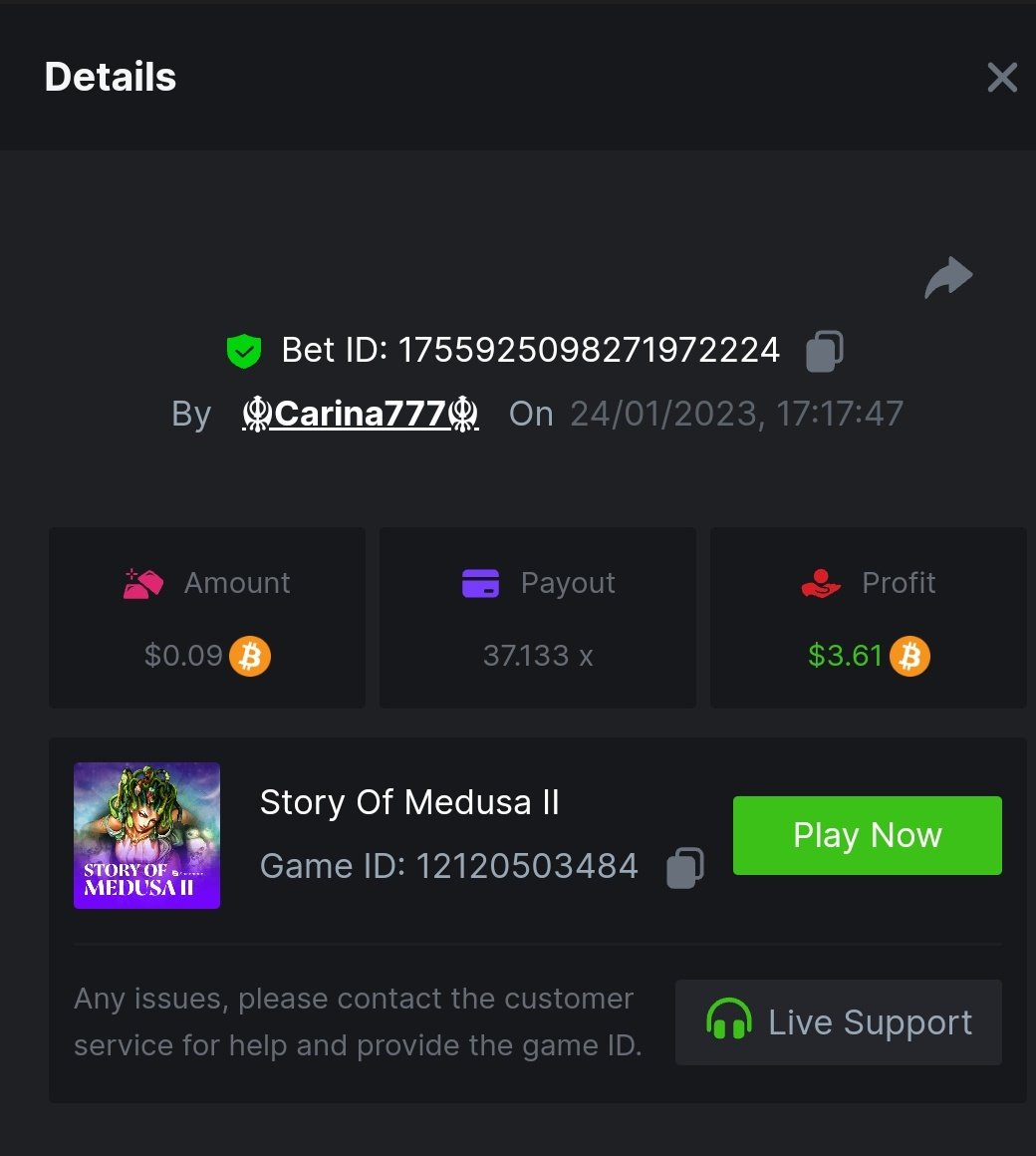 uchitel Posted January 24, 2023 Share Posted January 24, 2023 (edited) https://bc.game/#/sd/1122PBTSAE60PF wolf 149.5 Queen: https://bc.game/#/sd/1122RZ0OWBGNIR Book of demigods 4: https://bc.game/#/sd/1122TKBBGBZ7DF Book of bcgame: 153.07 https://bc.game/#/sd/1122S74TA92Z2R Story of medusa: 90.04 https://bc.game/#/sd/1122SK4MBHW5XV Book of rampage 2:https://bc.game/#/sd/1122RK5RR7MD5F Edited January 24, 2023 by uchitel Link to comment Share on other sites More sharing options...