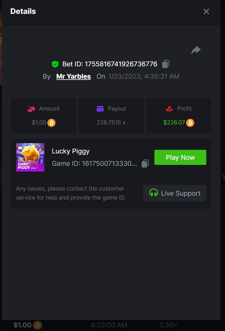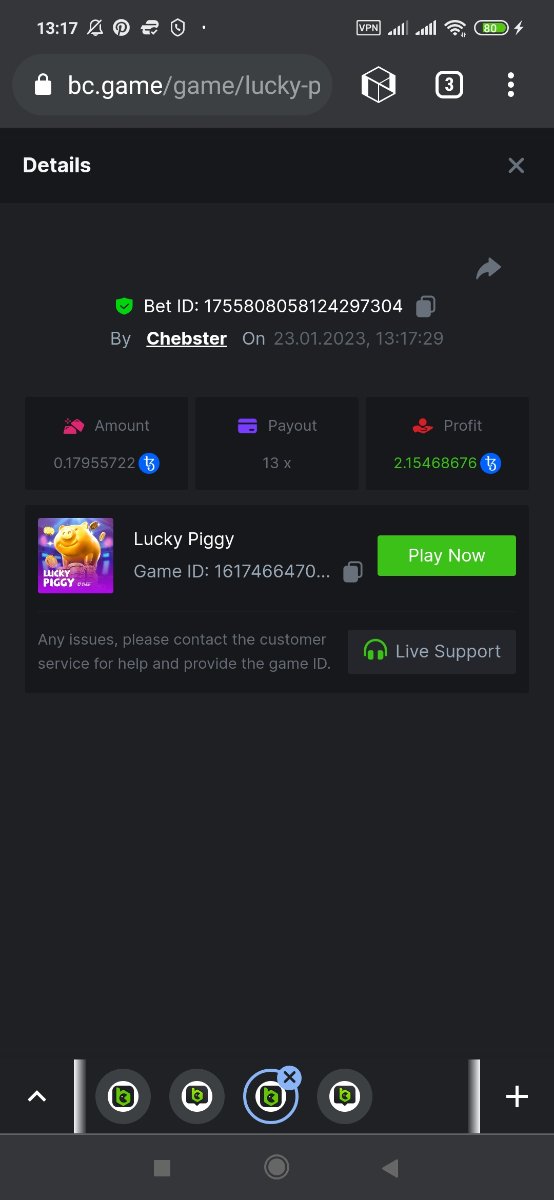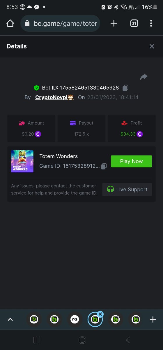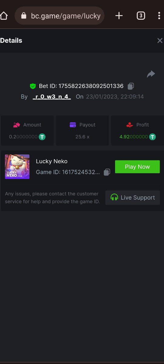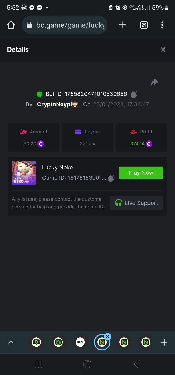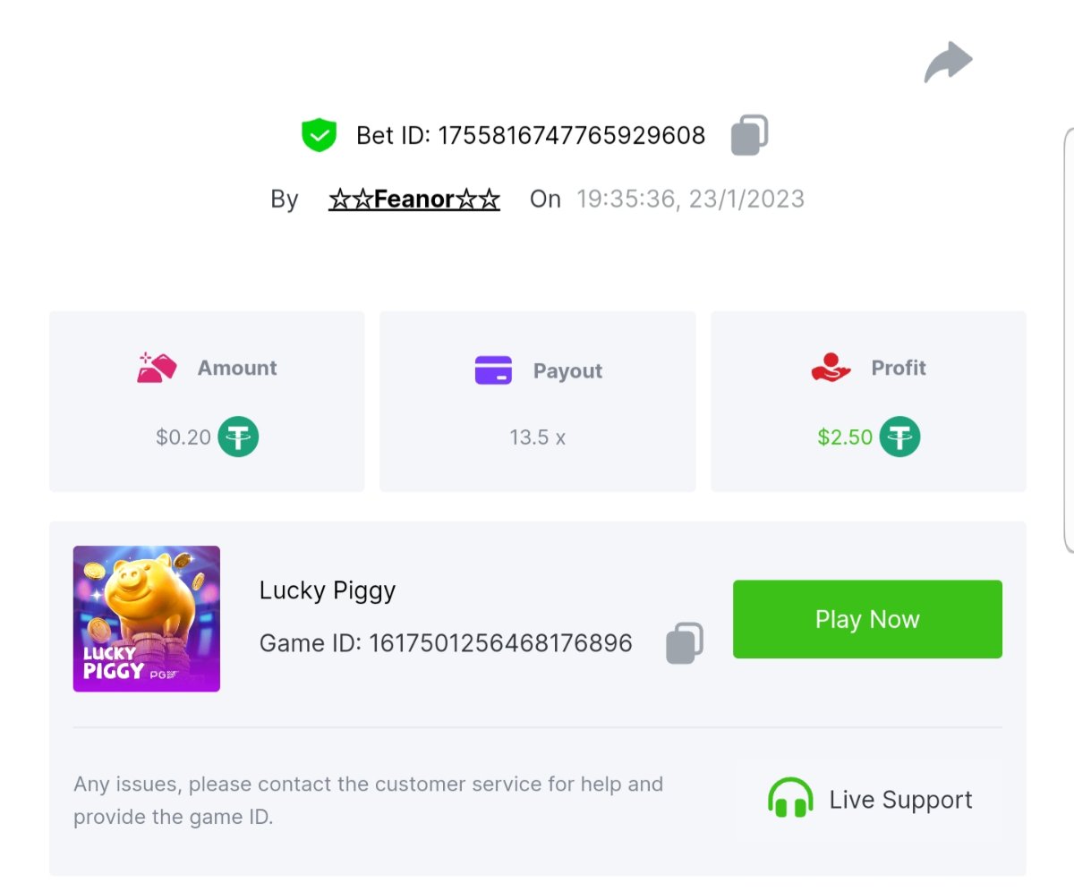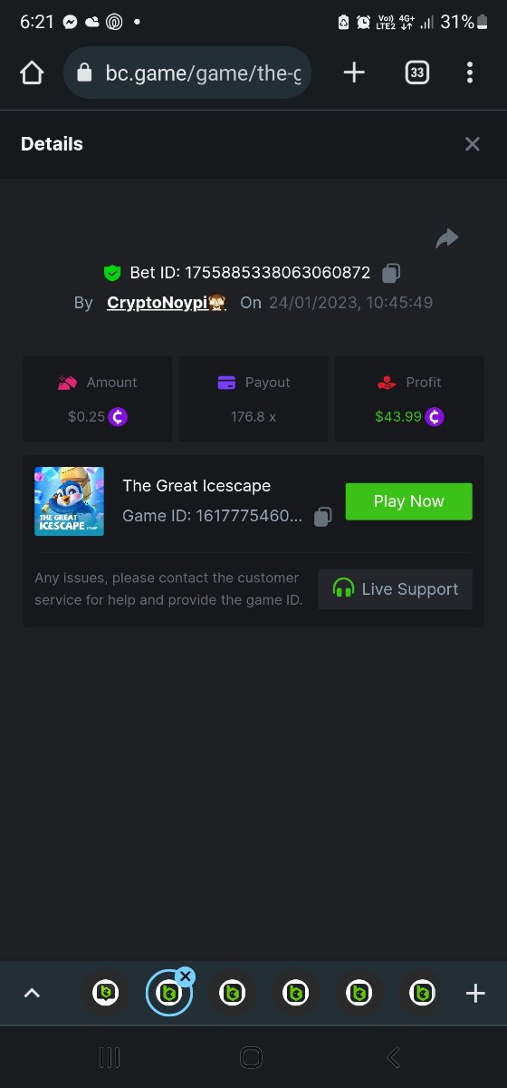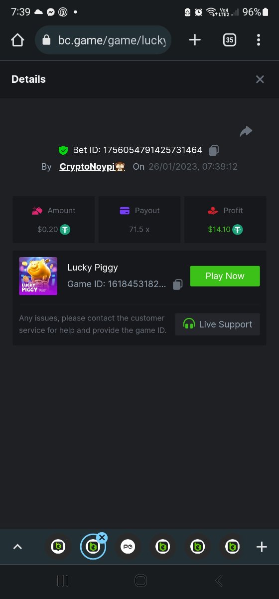 CryptoNoypii Posted January 23, 2023 Share Posted January 23, 2023 LUCKY NEKO 371.7x https://bc.game/#/sd/111ZOA7J9X2043 TOTEM WONDER 172.5X https://bc.game/#/sd/111ZZGW17QP1QR THE GREAT ESCAPE 176.8x https://bc.game/#/sd/1124OH0PHN7NRN PIGGY https://bc.game/#/sd/11261WGZMNGAVN Link to comment Share on other sites More sharing options...