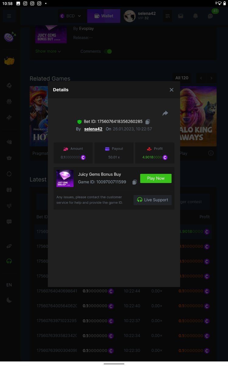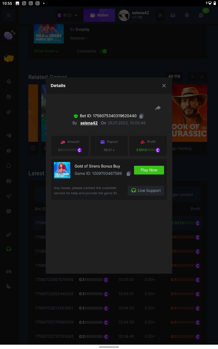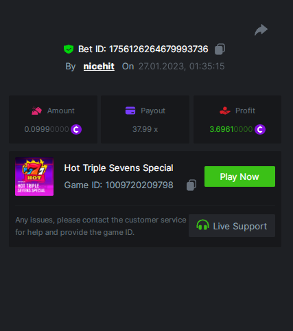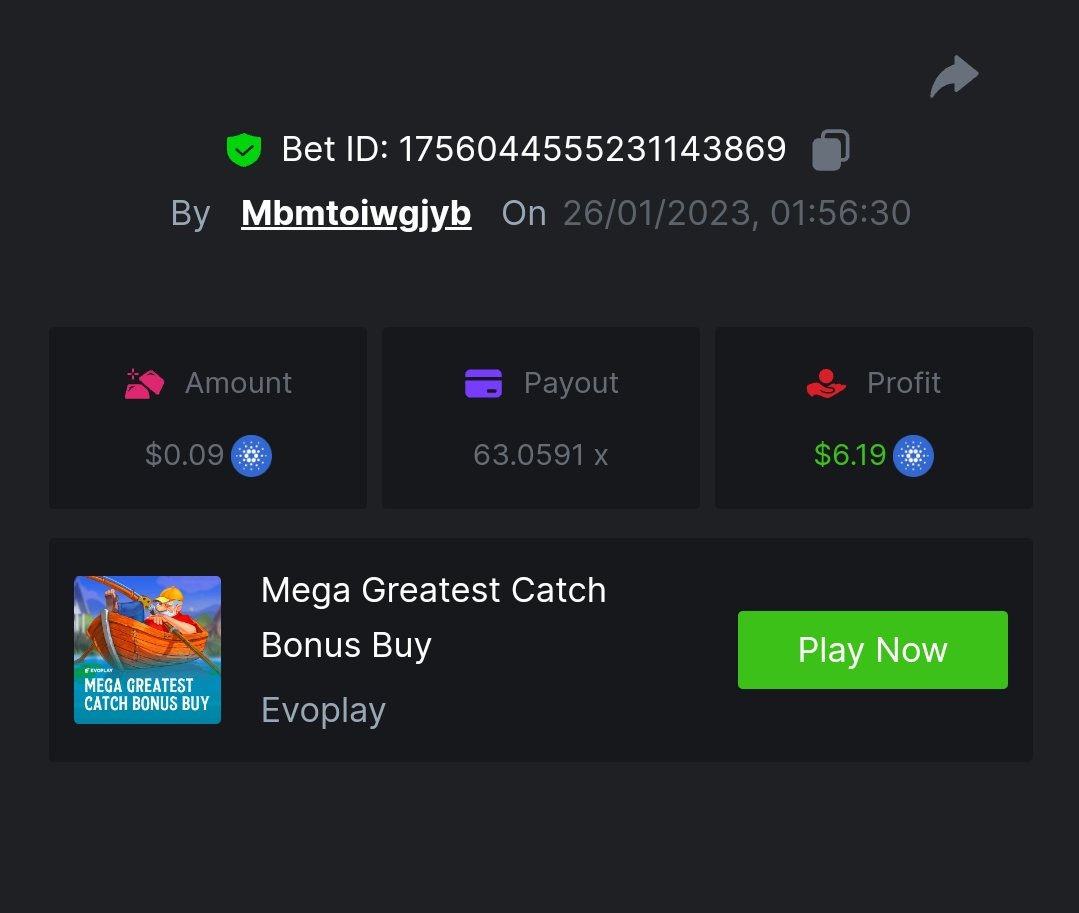 bassabar Posted January 26, 2023 Share Posted January 26, 2023 Total multiplier: 434.8307x Bounty (50x): No Mega Greatest Catch Bonus buy Multiplier: 195.574x https://bc.game/#/sd/1126LO0GQUQUJ7 Hot Volcano Bonus buy Multiplier: 28x https://bc.game/#/sd/1124KASCRCG4CZ Gold Of Sirens bonus buy Multiplier: 30x https://bc.game/#/sd/1124JQYN2DWU8J Magic Wheel Multiplier: x Inner Fire bonus buy Multiplier: 25.1987x https://bc.game/#/sd/1124KH7RMPE7F7 Hot Triple Seven Special Multiplier: 30.509x https://bc.game/#/sd/1126KWA8F8F9JN Patricks Magic Field Multiplier: x Rueda De Chile Bonus Buy Multiplier: 45.017x https://bc.game/#/sd/1126KQPCRG93PV Massive Luck Multiplier: 36.514x https://bc.game/#/sd/1126KKLMM81FRN Juicy Gems Bonus Buy Multiplier: 44.018x https://bc.game/#/sd/1126K13JKSCT1V Link to comment Share on other sites More sharing options...