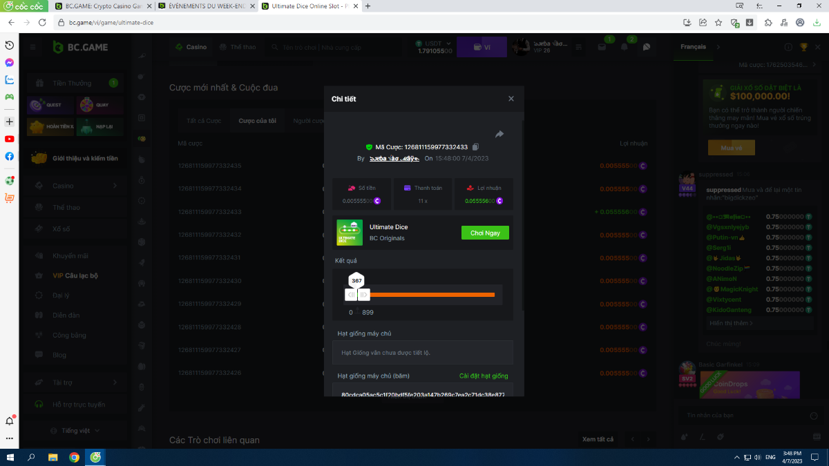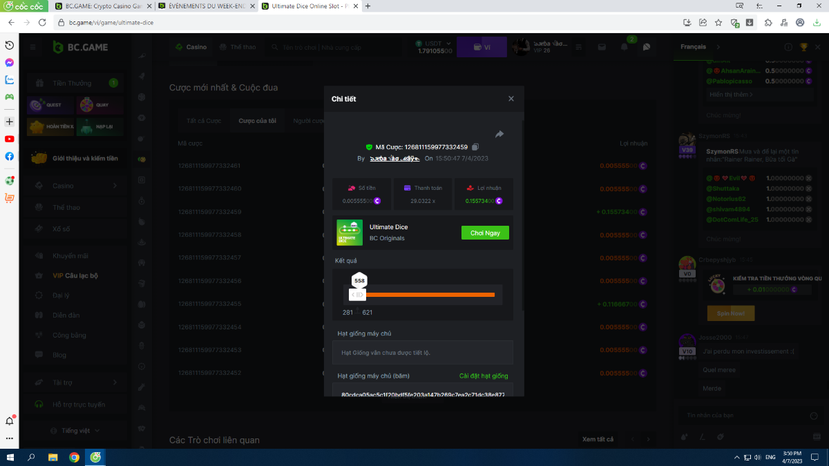 Complétez autant des 17 paiements suivants sur BC original👍 ULTIMATE DICE (https://bc.game/fr/game/ultimate-dice)👍. Doit être un multiplicateur exact ou très proche.