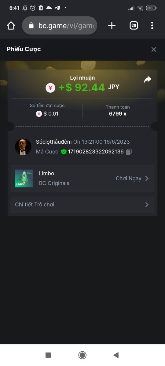 Maksypro Posted June 16, 2023 Share Posted June 16, 2023 Read Carefully Before Start To Hunt Daily Challenges #268 LIMBO Hunt : Win the highest multiplier Min Multiplier requirement 100x Min Level 4 ๏ธDuration Starting : Now End time : 23.59 UTC Time How to Join? Make screenshot + paste your bet link + UID or Profile link Any coin, with min bet 0.01 USD is allowed (jb/bb/bcl not allowed) Reward Prizes 1st Place.....$7 BCD 2nd Place.....$5 BCD 3rd Place.....$4 BCD 4th Place.....$3 BCD 5th Place.....$2 BCD ๐ต Winners will be announcing next day after Roll Point! 1 Link to comment Share on other sites More sharing options...