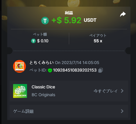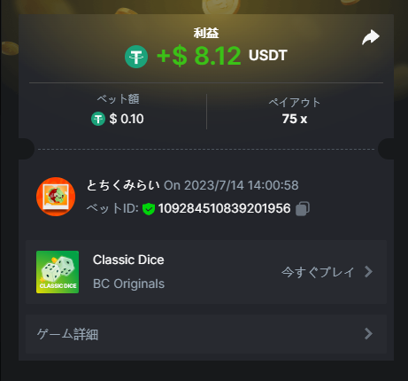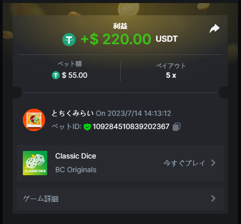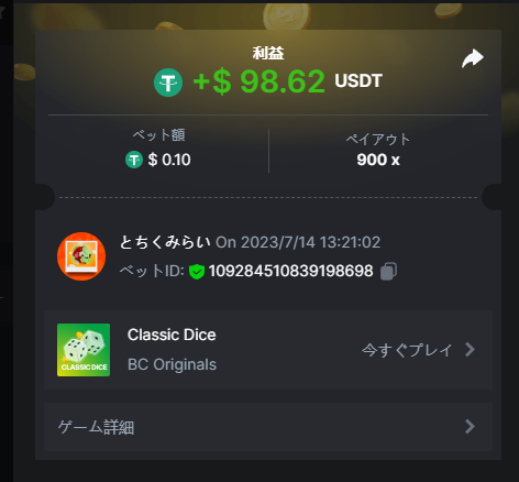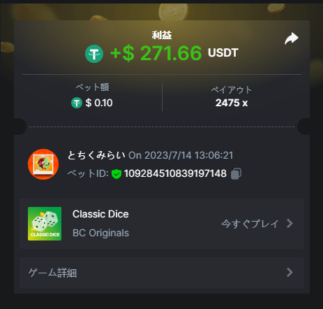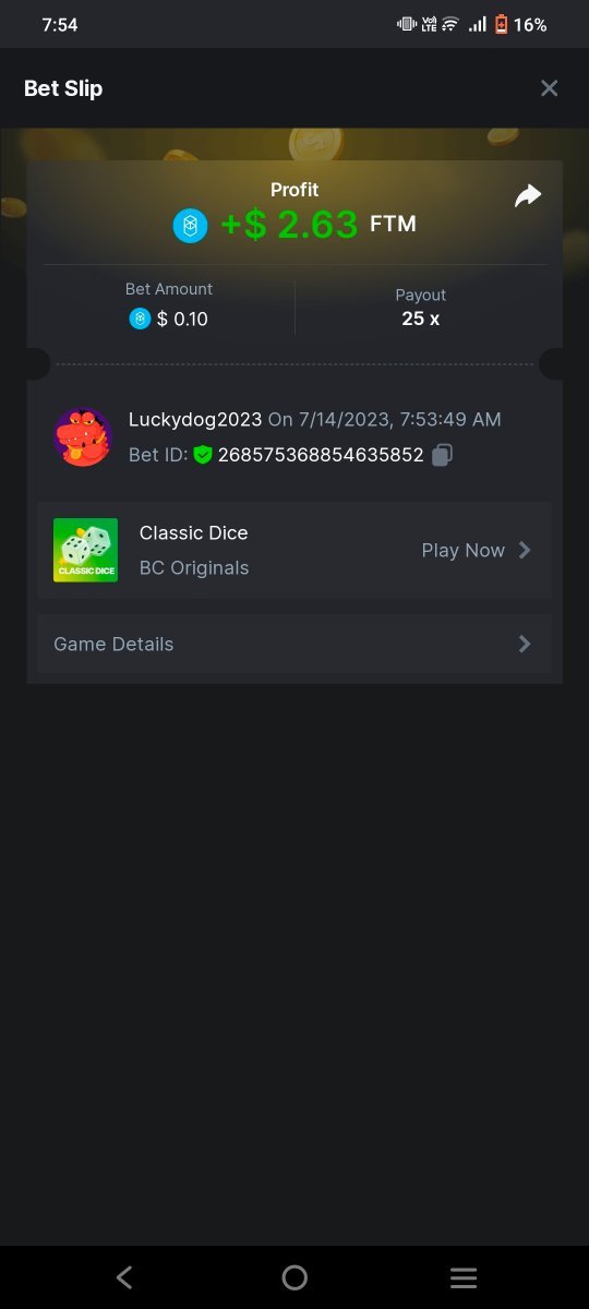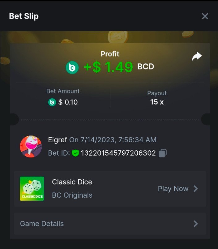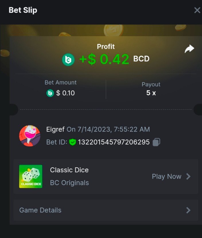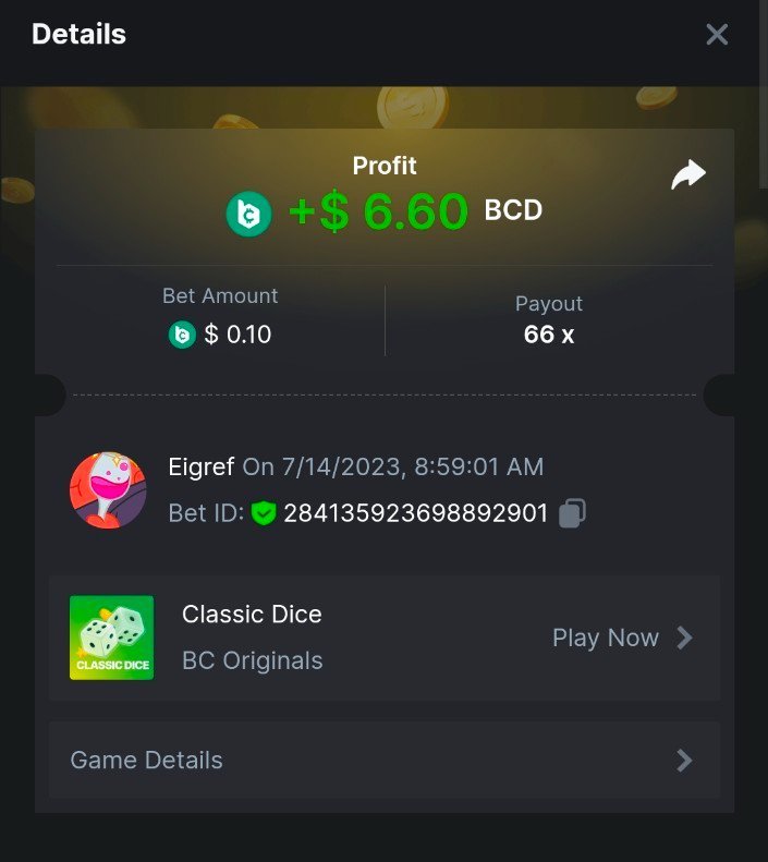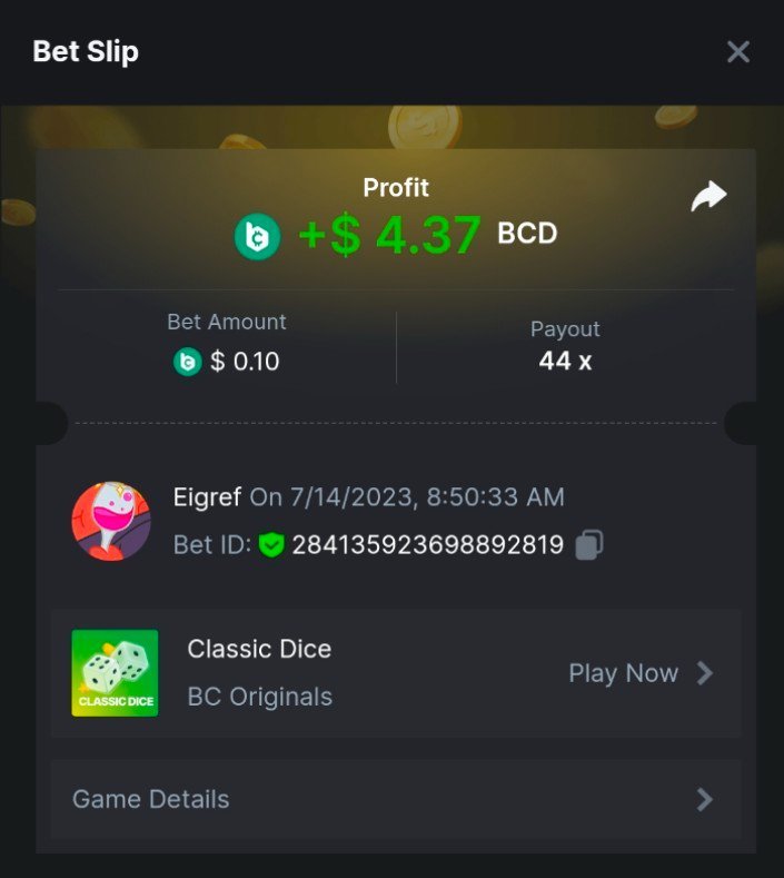 Eigref Posted July 13, 2023 Share Posted July 13, 2023 (edited) lol classic dice went on rigged mode today ate my 15$ hunting just 25x very frustrating, no wonder players before above me have not completed 4 payouts. https://bc.game/#/sd/11DSFPTVN17V2R https://bc.game/#/sd/11DSFSEW57LOGJ https://bc.game/#/sd/11DSI0FJUB94PF https://bc.game/#/sd/11DSITJXM1UJ9V https://bc.game/#/sd/11DSJ4U9OAKLXV https://bc.game/#/sd/11DSJGIBMQXA1F https://bc.game/#/sd/11DSJNQ5D613IR Now trying for another 11$ lolgood thing evoplay slots gave me profit 200x of 0.20$ =40$ Edited July 14, 2023 by Eigref Link to comment Share on other sites More sharing options...