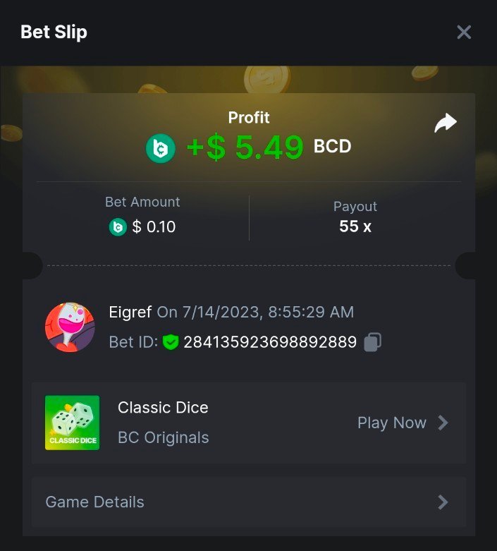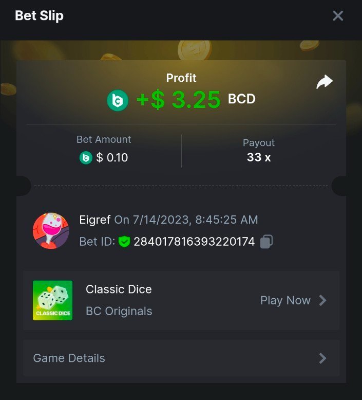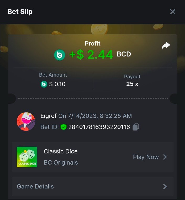 Luckydog2023 Posted July 14, 2023 Share Posted July 14, 2023 (edited) | 5x | 15x | 25x | 33x | 44x | 55x | 66x | 75x | 90x | 99x | 100x | 150x | 180x | 220x | 300x | 330x | 396x | 450x | 550x | 825x | 900x | 1100x | 2475x | 3300x | 4950x |. 5x - https://bc.game/#/sd/11DSOJQMJSR6KZ 15x - https://bc.game/#/sd/11DSOTP7FSHVRN 25x - https://bc.game/#/sd/11DSOX9BK9TZPV 33x - https://bc.game/#/sd/11DSP02SD3GNPV Edited July 14, 2023 by Luckydog2023 Link to comment Share on other sites More sharing options...