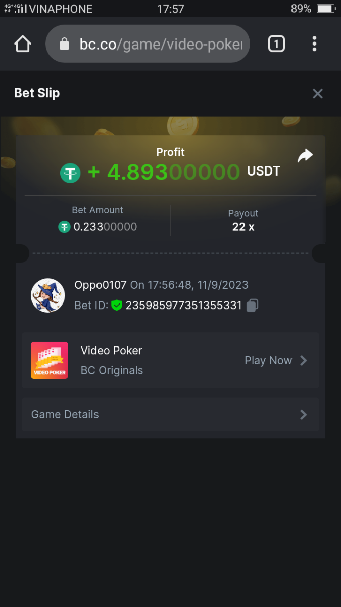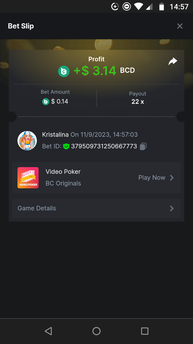 5th place . . . .  2$ BCD  - Ngay0405 - 22x  3.17